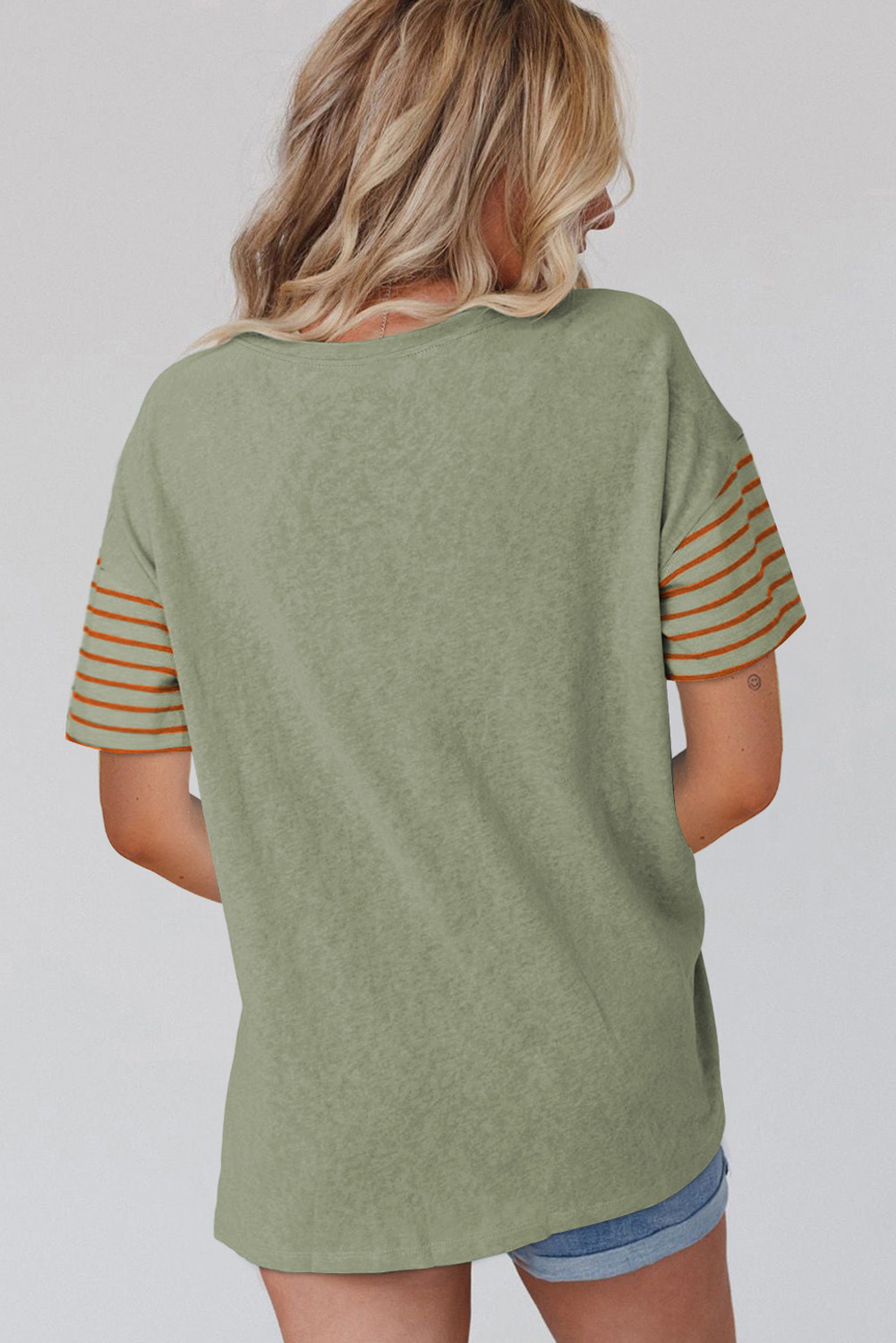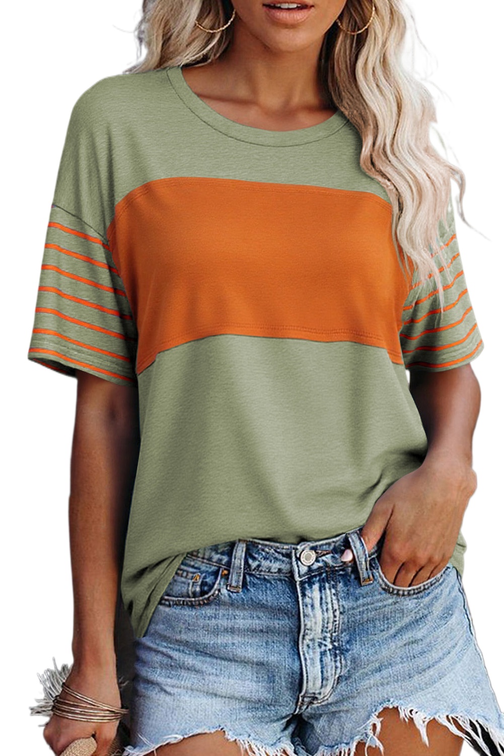 Women’s Laurel Green Color Block Striped T-Shirt – Casual Summer Style for Daily Wear