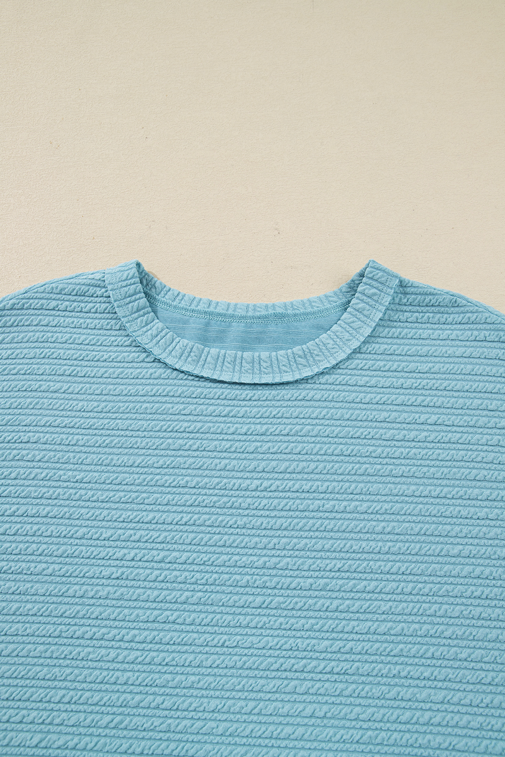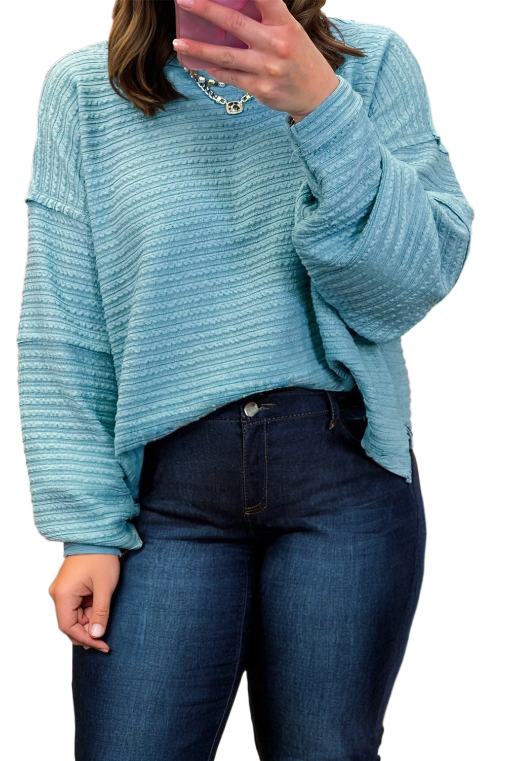 Women’s Light Blue Textured Drop Shoulder Knit Top – Casual Daily Wear for Plus Size Comfort
