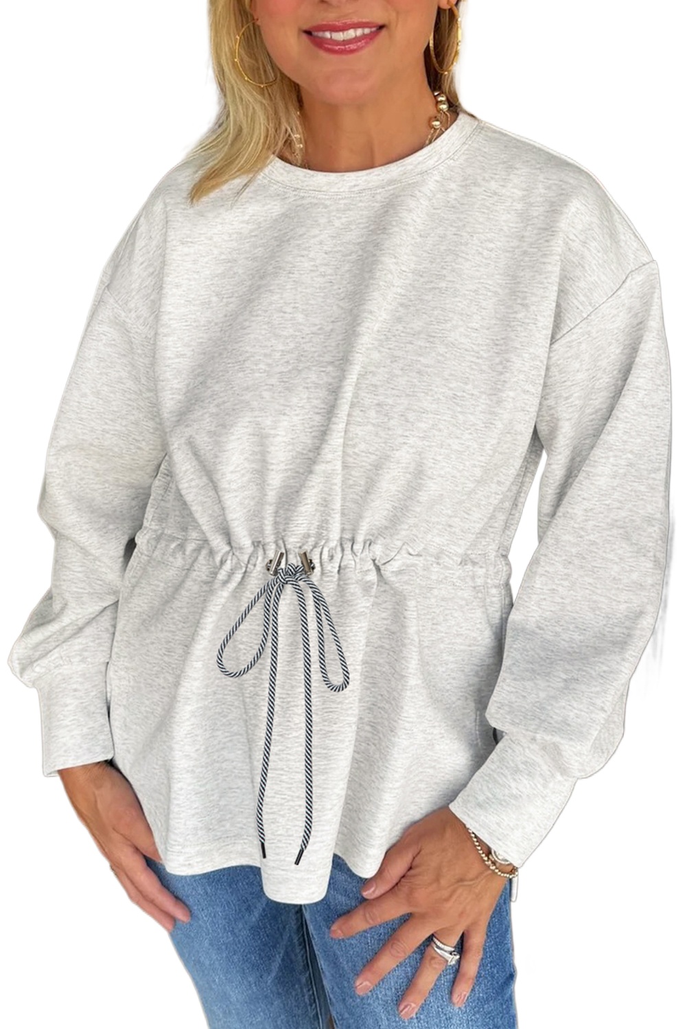 Women’s Light Grey Drawstring Tunic Sweatshirt – Casual Daily Wear