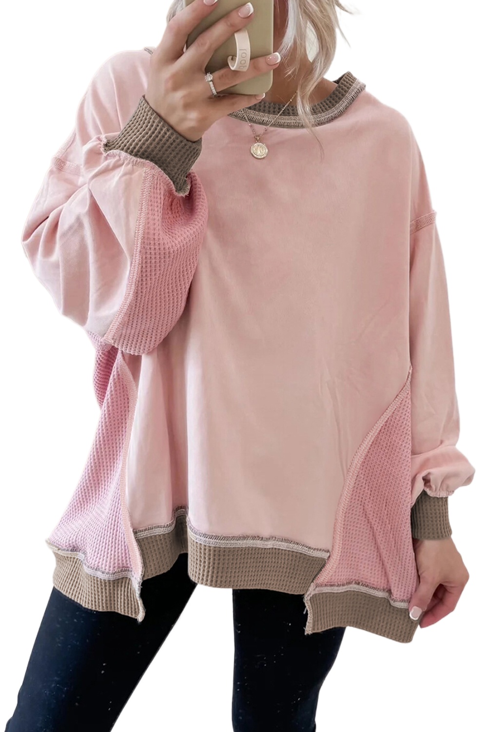 Women’s Light Pink Color Block Oversize Sweatshirt – Cozy Casual Style for Everyday Wear