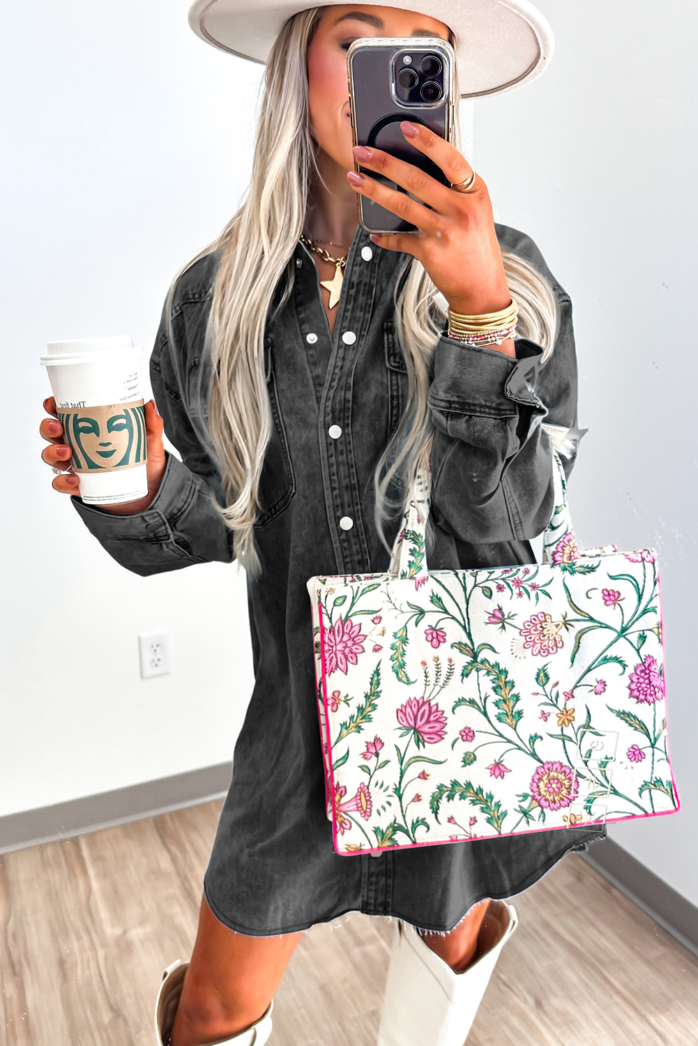 ✓ Versatile Medium Grey Denim Fabric: Crafted from 100% cotton in a solid color, this shirt dress offers a relaxed loose fit that transitions seamlessly from casual days to light errands for women.