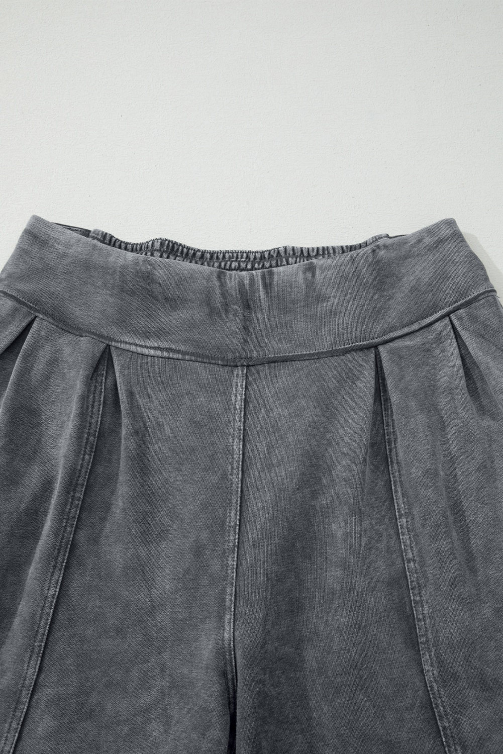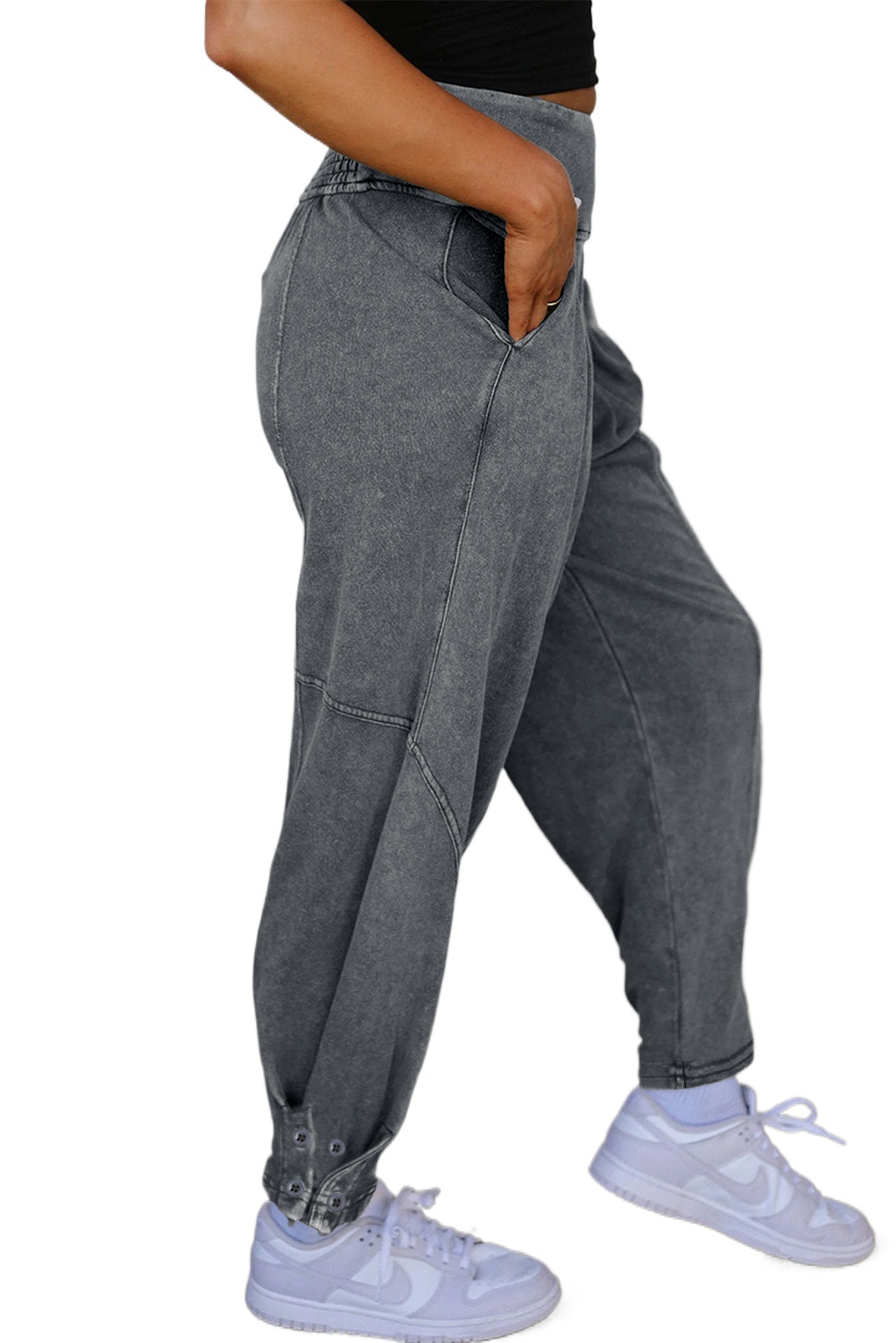 Women’s Medium Grey Mineral Wash Jogger Pants – High Waist Casual Style for Everyday Comfort