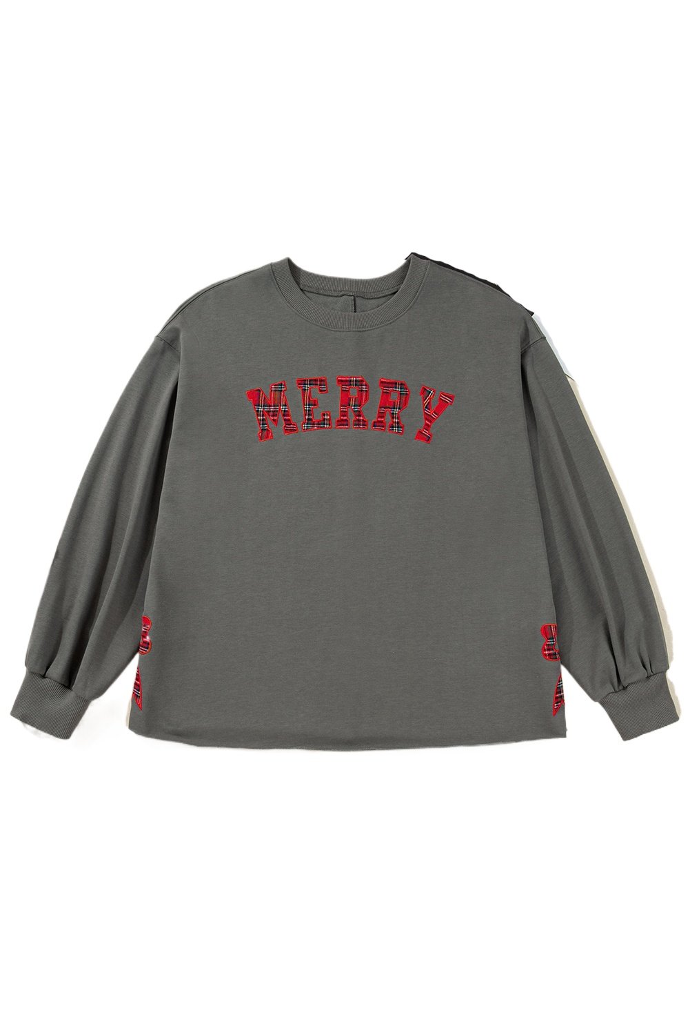 & Free Shipping✓ Festive Plaid Pattern with Merry Bow: The medium grey plaid design features embroidered Merry bow details for a joyful Christmas touch that enhances everyday outfits for women.