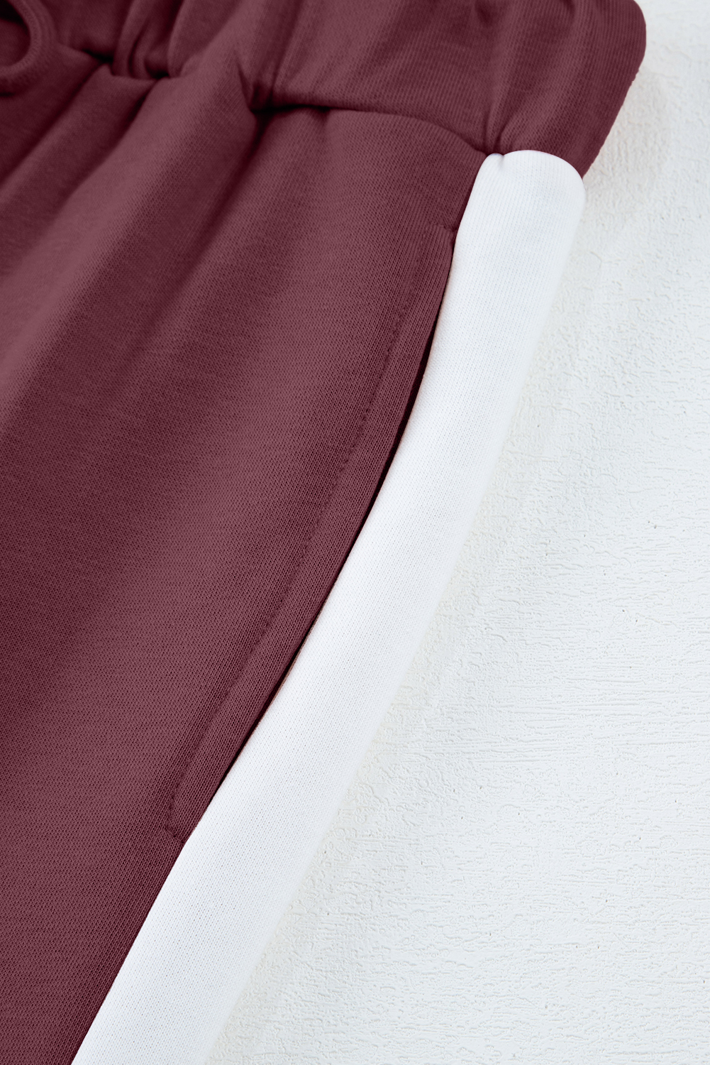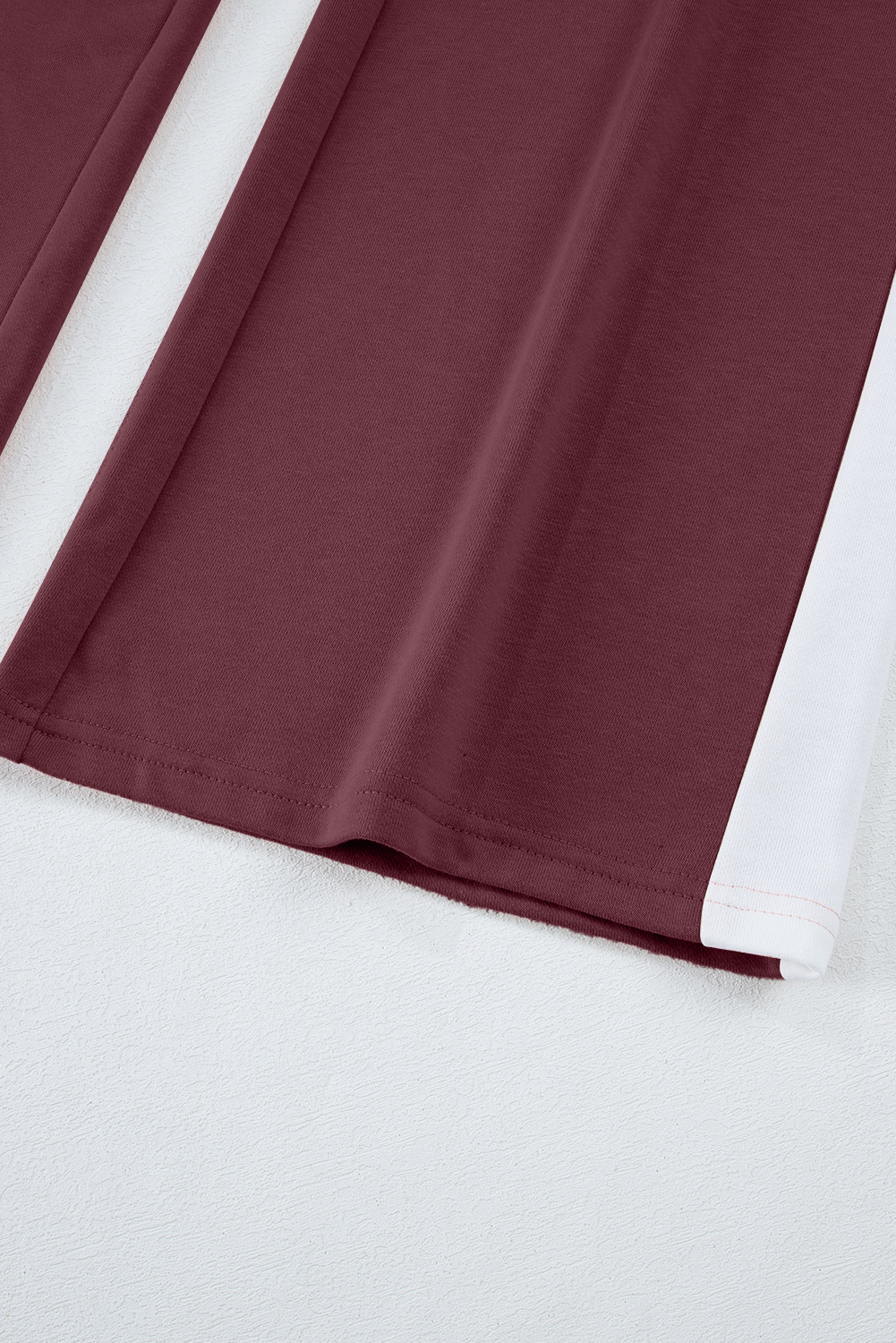✓ Versatile Mineral Red Design: The striped patchwork adds a casual touch to this women’s pullover and wide leg pant set, ideal for everyday outfits.