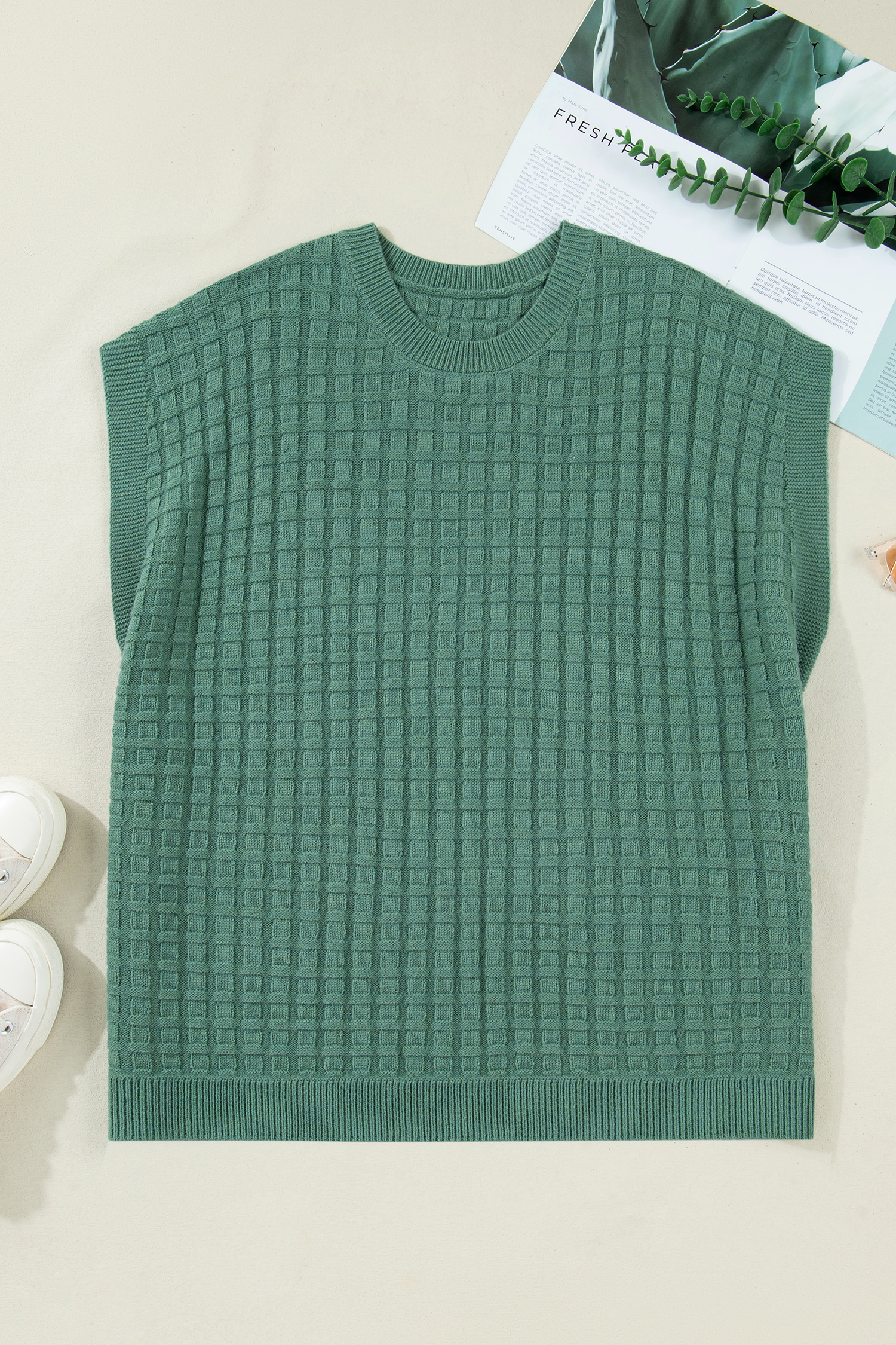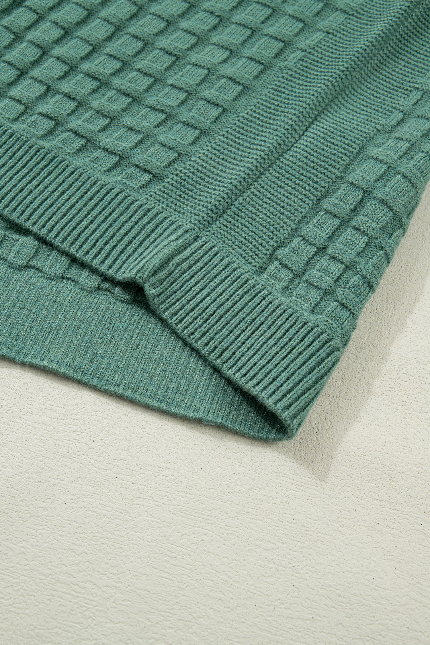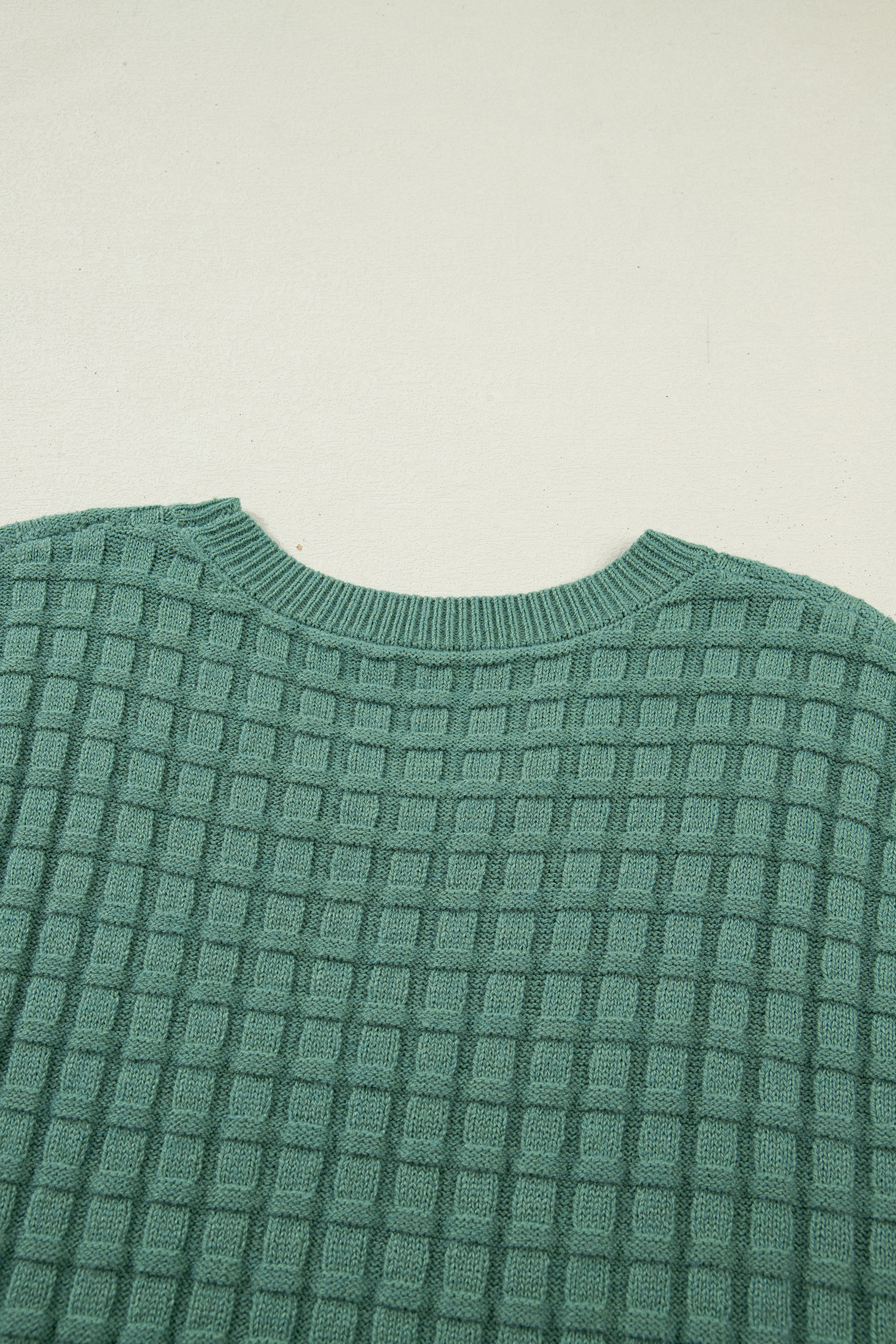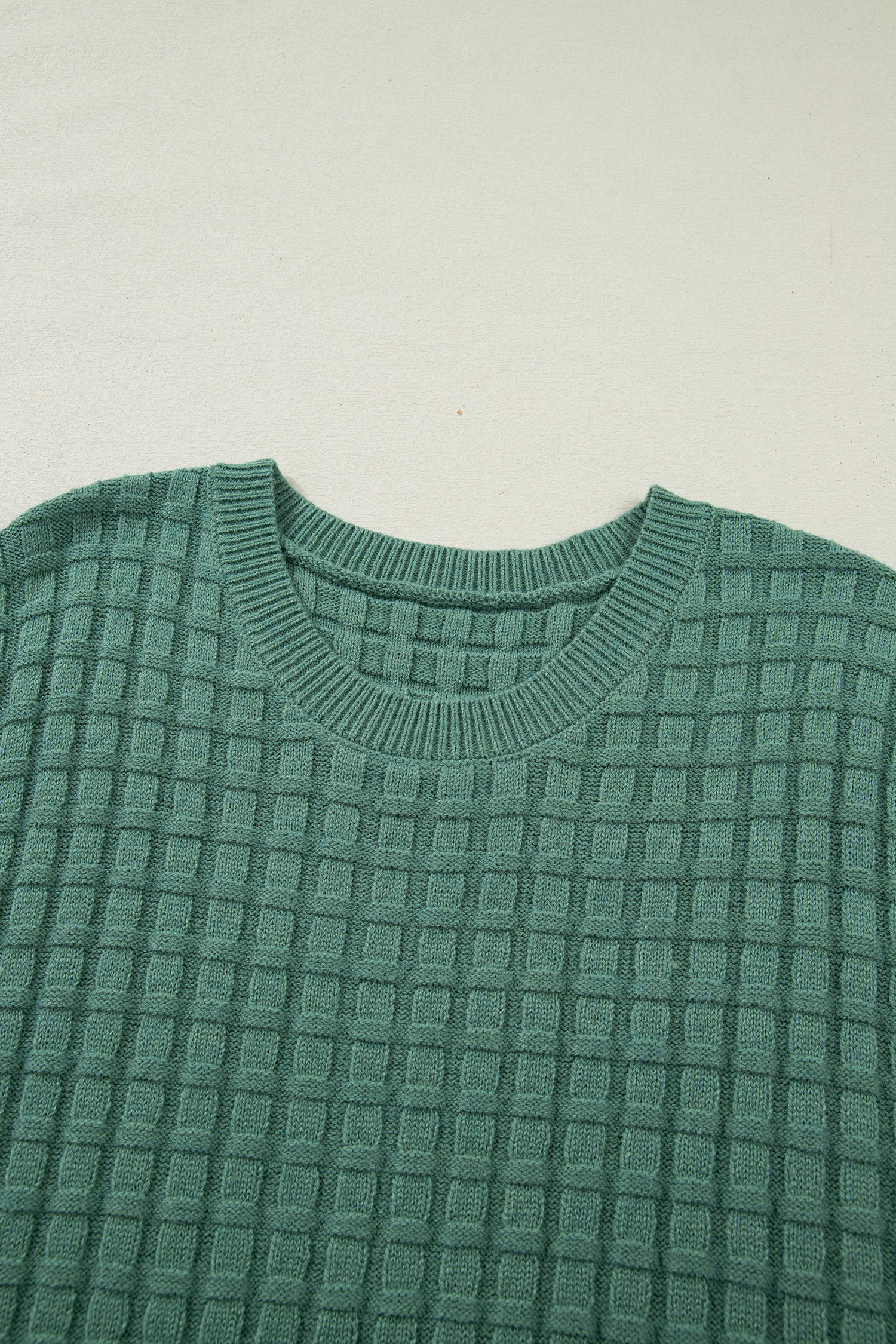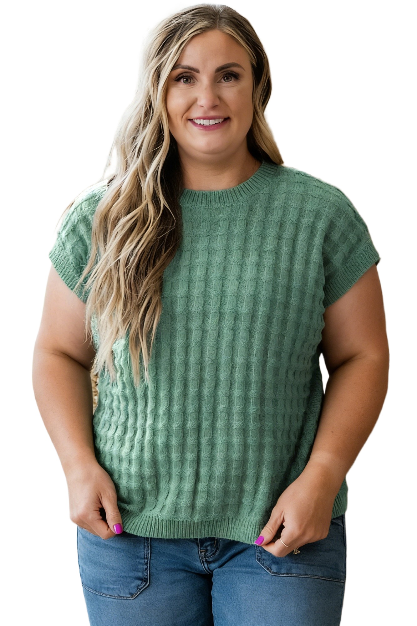 Women’s Mist Green Plus Size Textured Knit Sweater – Casual Short Sleeve for Daily Wear