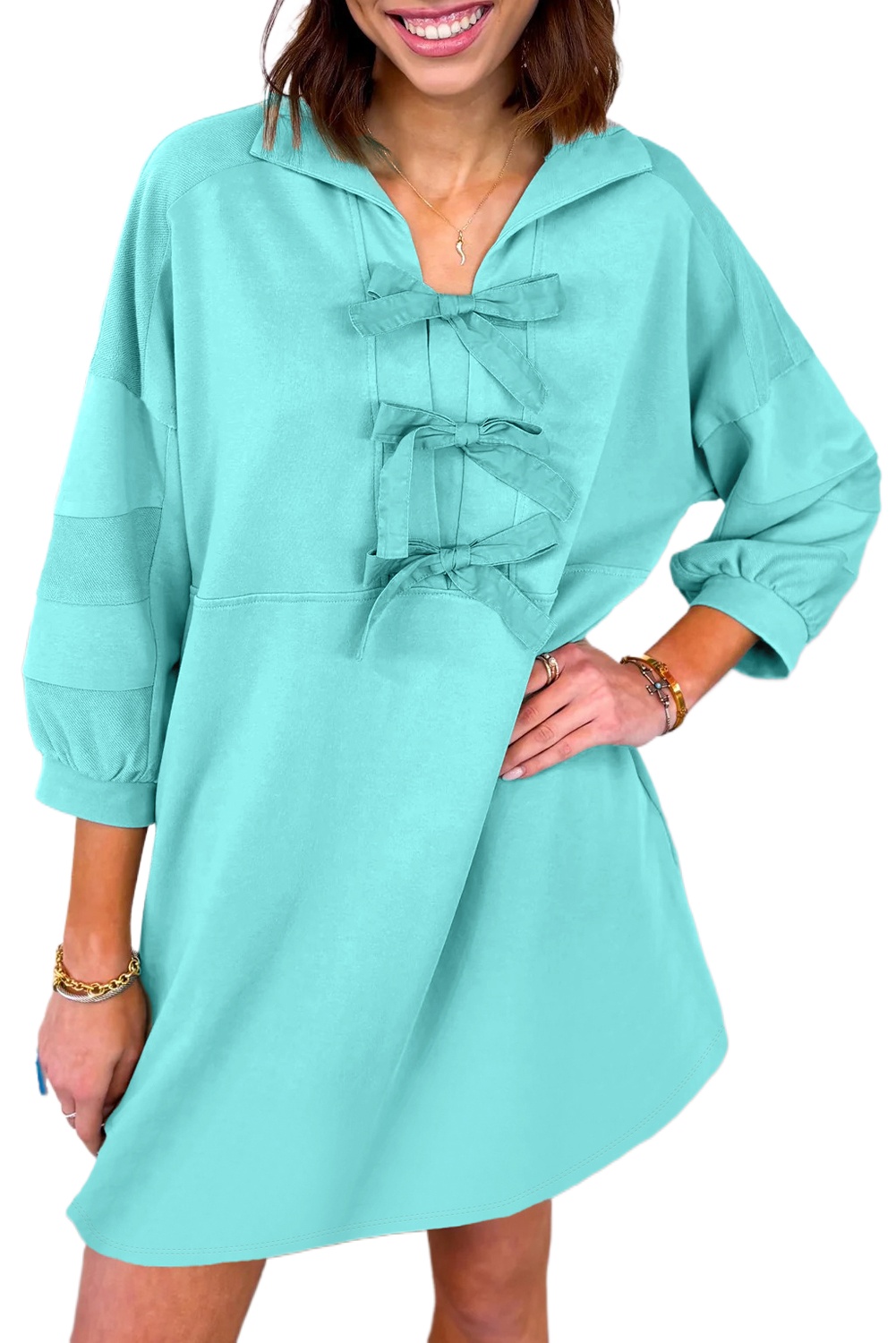 Women’s Moonlight Jade Bow Front Mini Dress with Collared Shift Design and Side Pockets