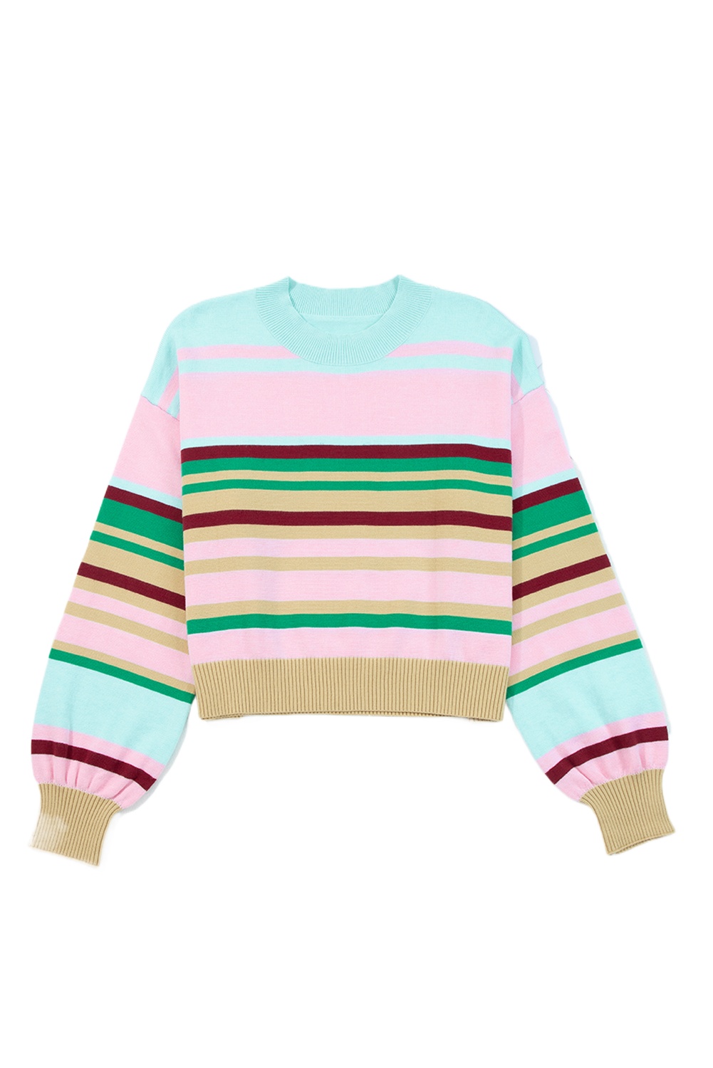 Women’s Multicolour Striped Cropped Sweater – Boxy Fit Long Sleeve for Daily Wear