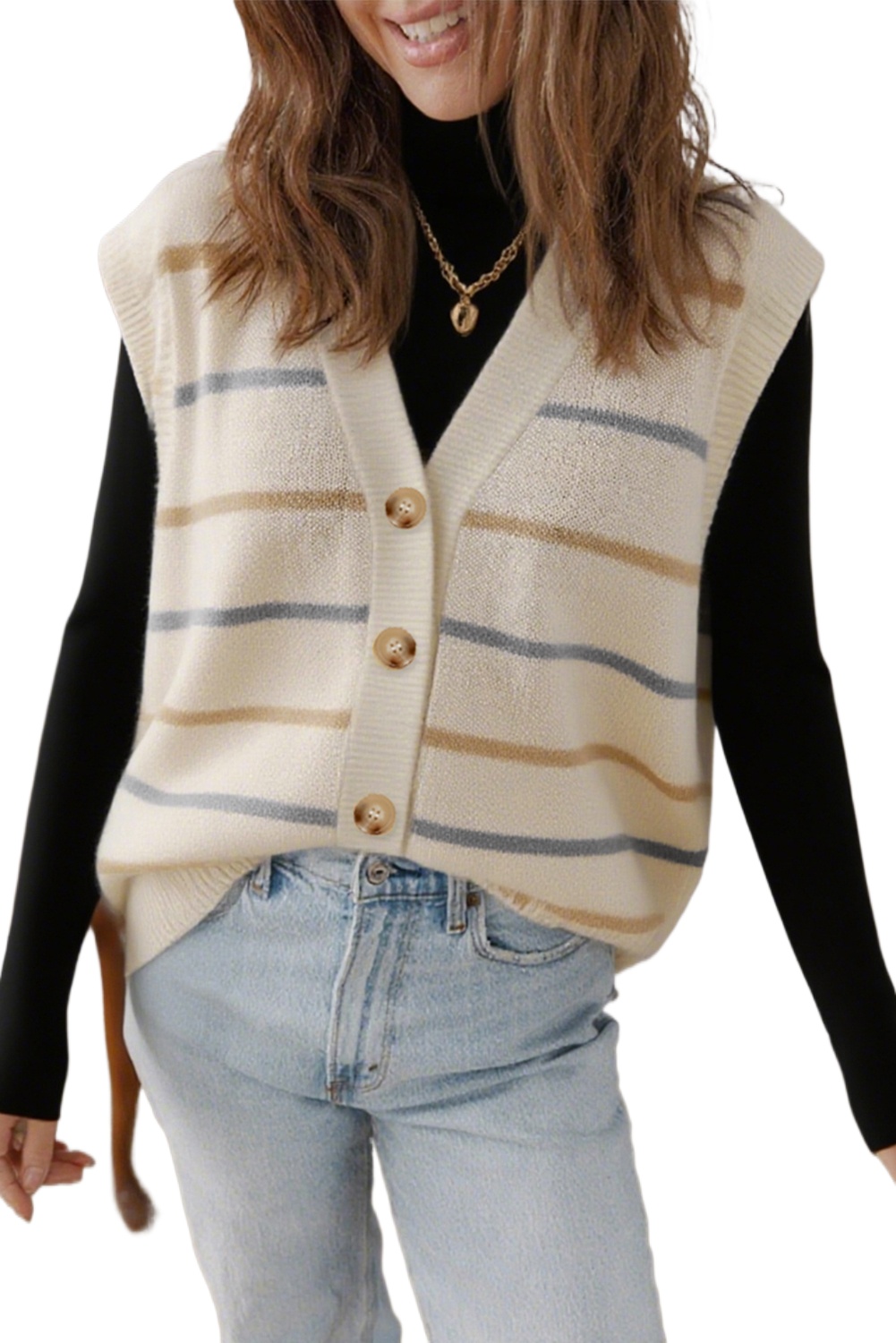 Women’s Multicolour Striped V-Neck Sweater Vest for Daily Casual Wear