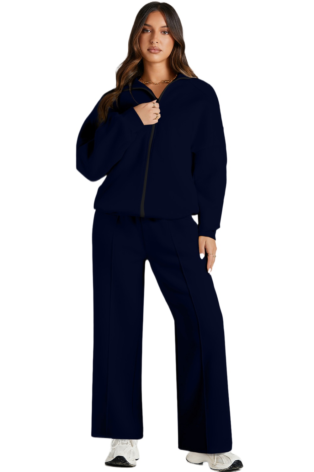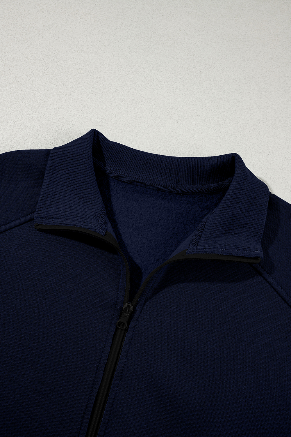 Women’s Navy Blue Active 2-Piece Set: Drop Shoulder Jacket and Drawstring Pants