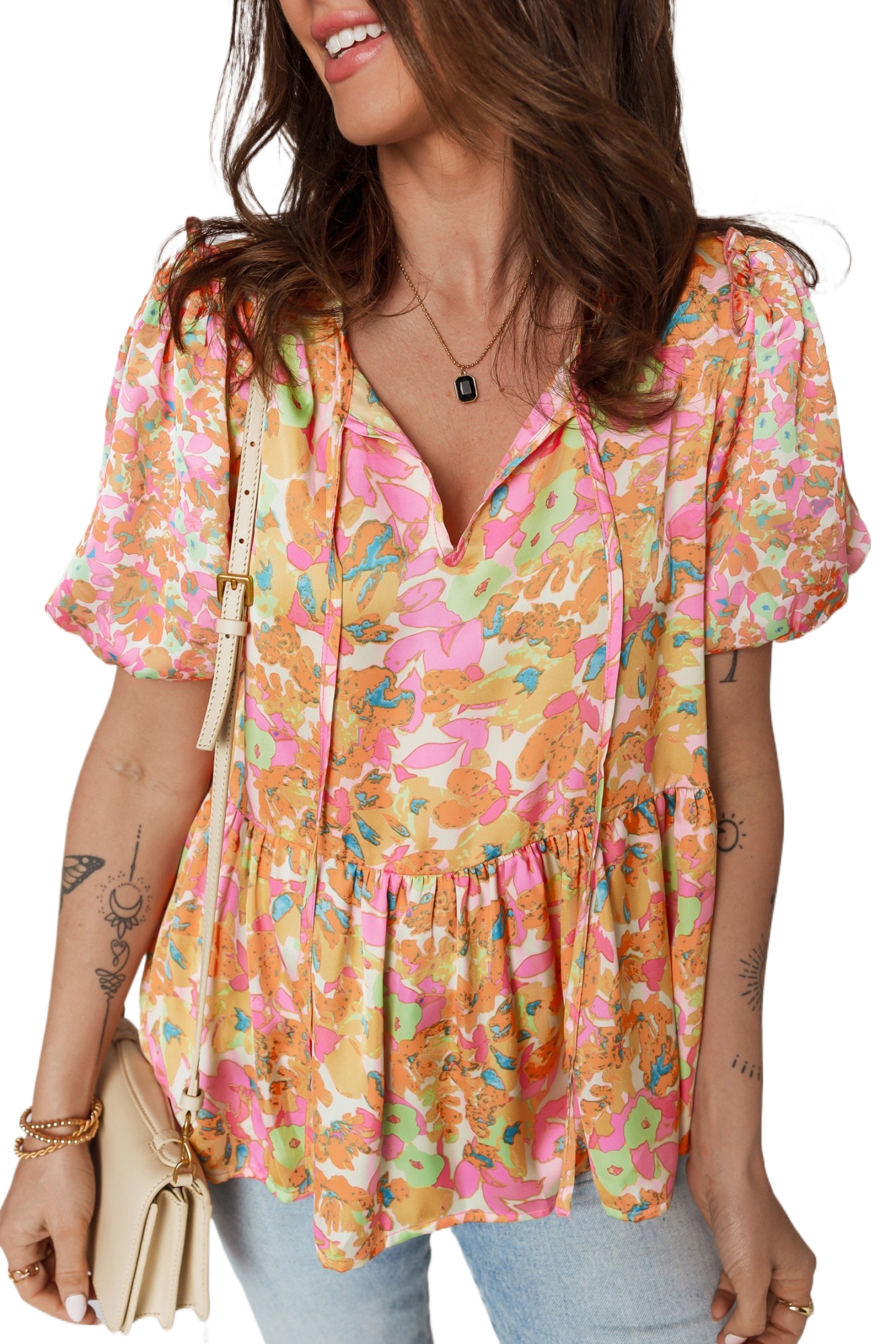 & Free Shipping✓ Bright and Cheerful Design: The vibrant orange color and floral print make this blouse a standout addition to any summer wardrobe.
