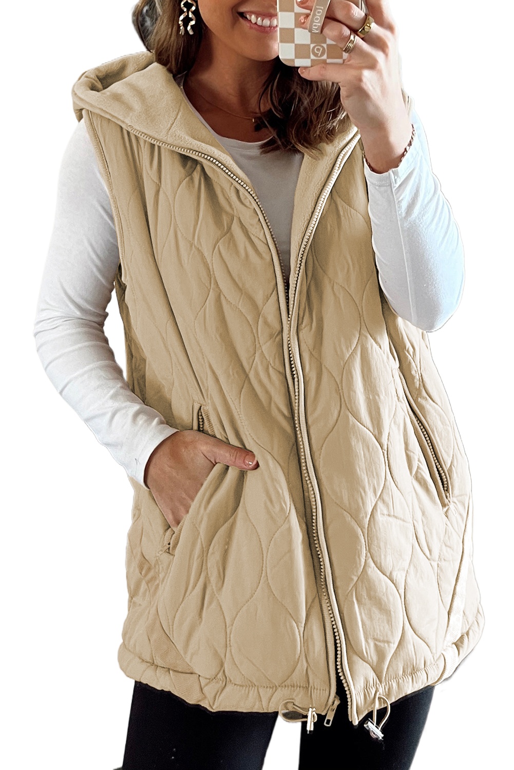 Women’s Pale Khaki Quilted Vest – Casual Winter Layering for Daily Wear