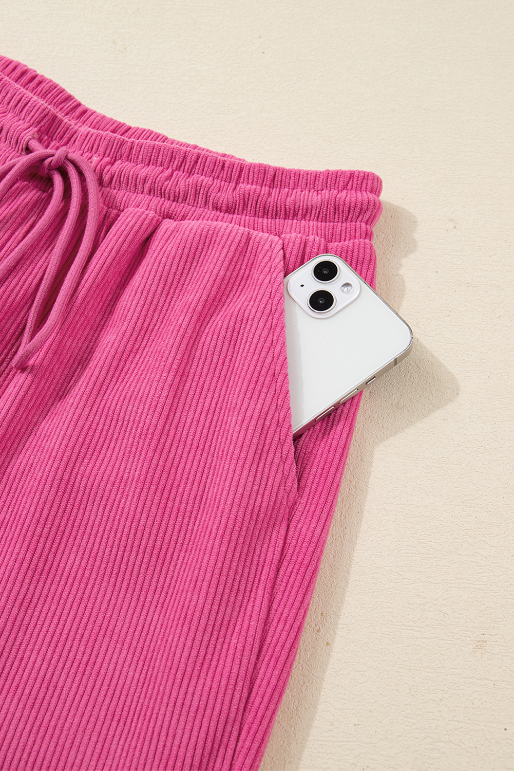 Women’s Peach Blossom Corduroy Pullover & Drawstring Pants Set – Casual Outfit for Daily Wear