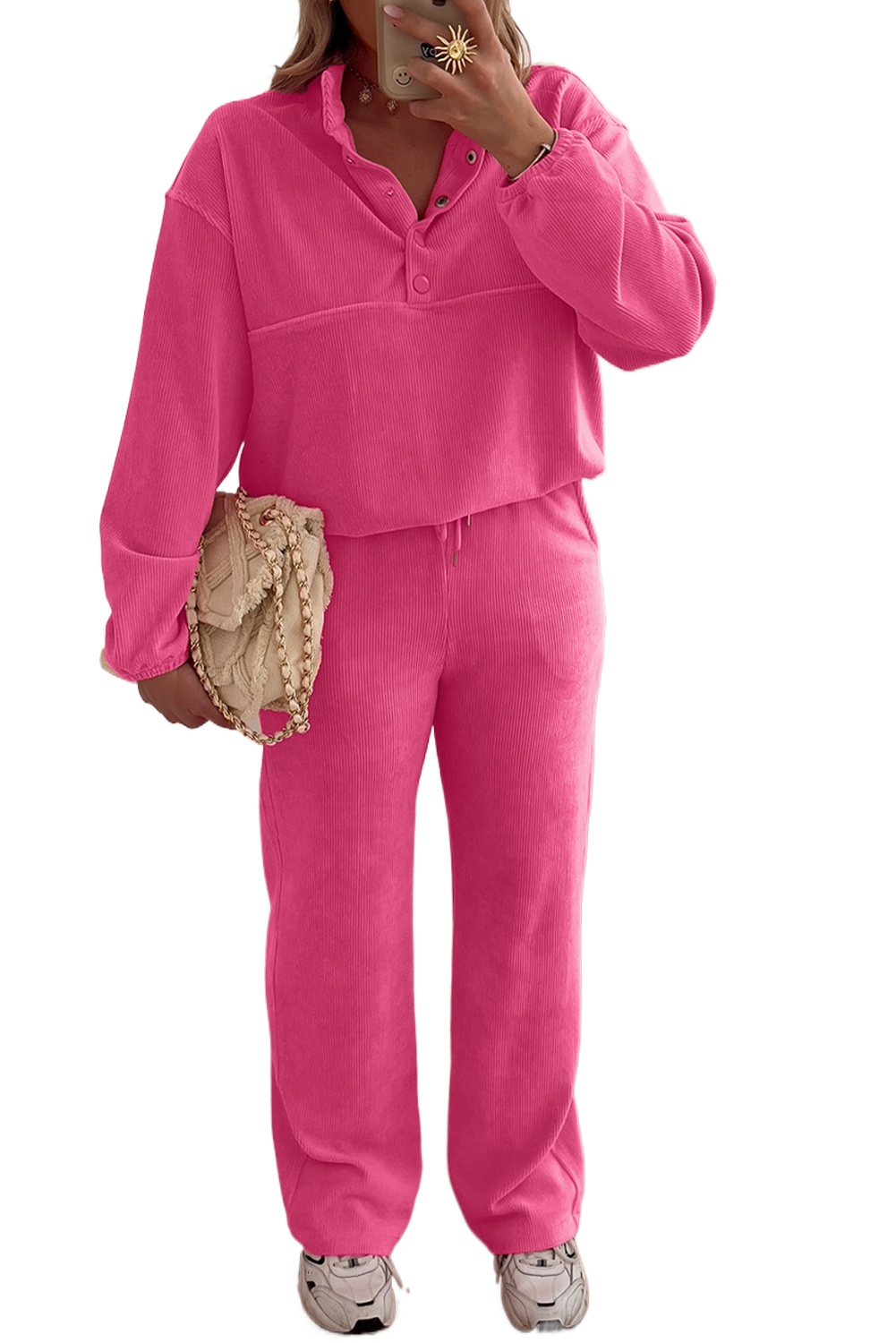 ✓ Soft and Comfortable Fabric: Made from 100% polyester corduroy, this outfit offers a cozy feel, perfect for daily wear during fall and autumn.