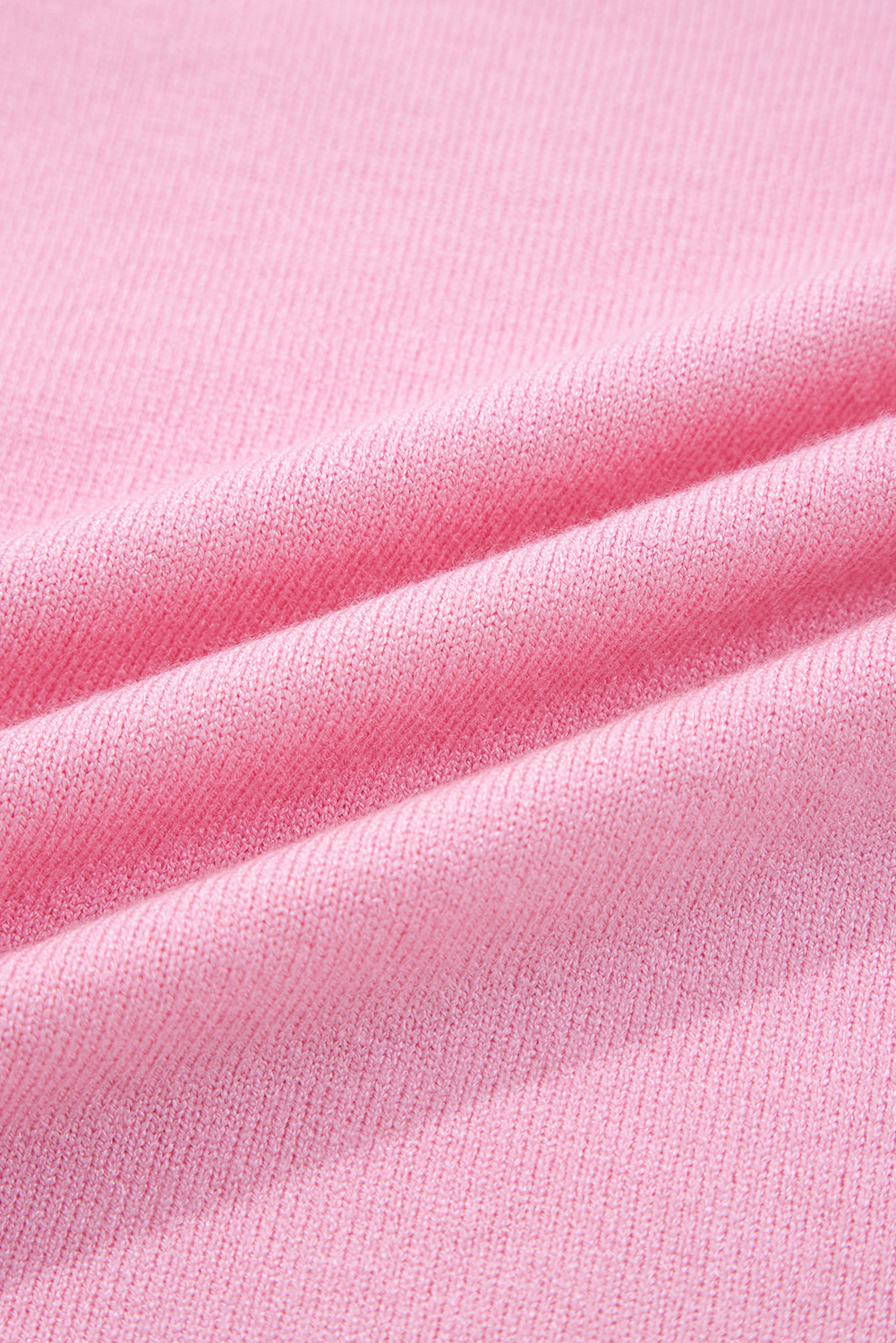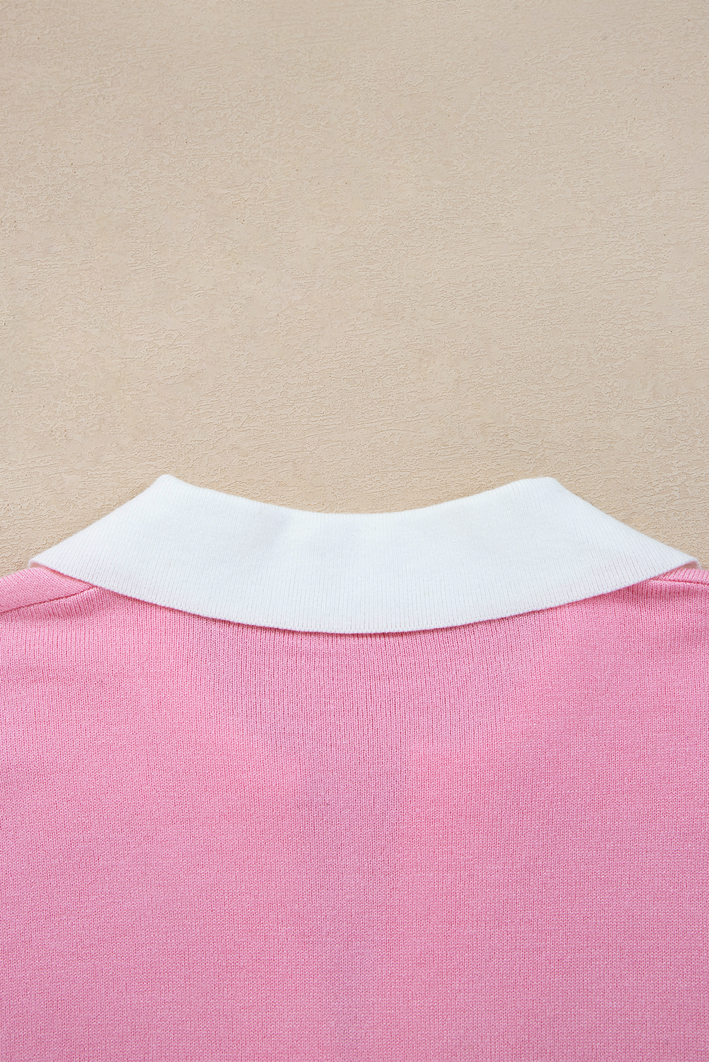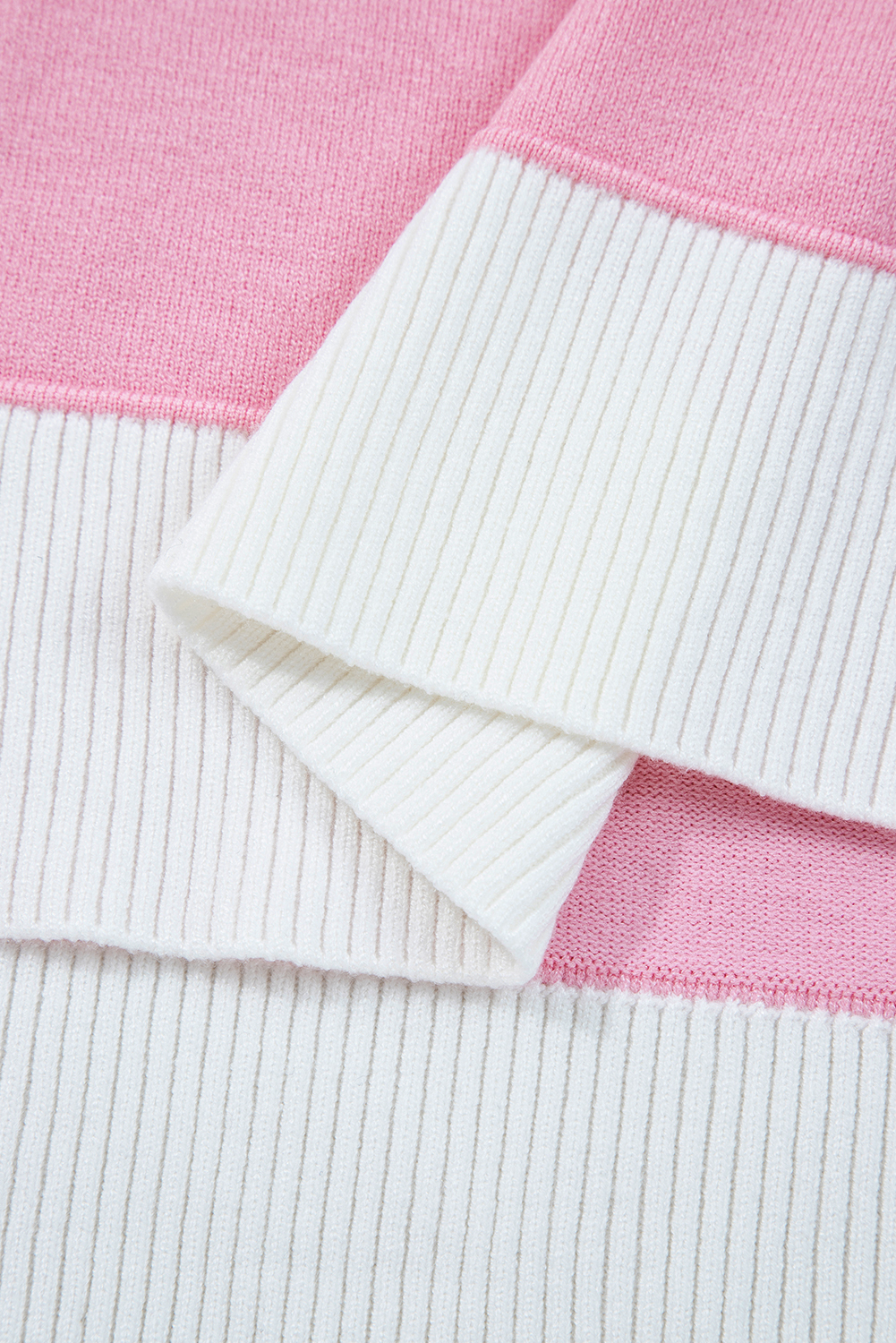 Women’s Pink Contrasting Polo Collar Color Block Knit Drop Shoulder Sweater
