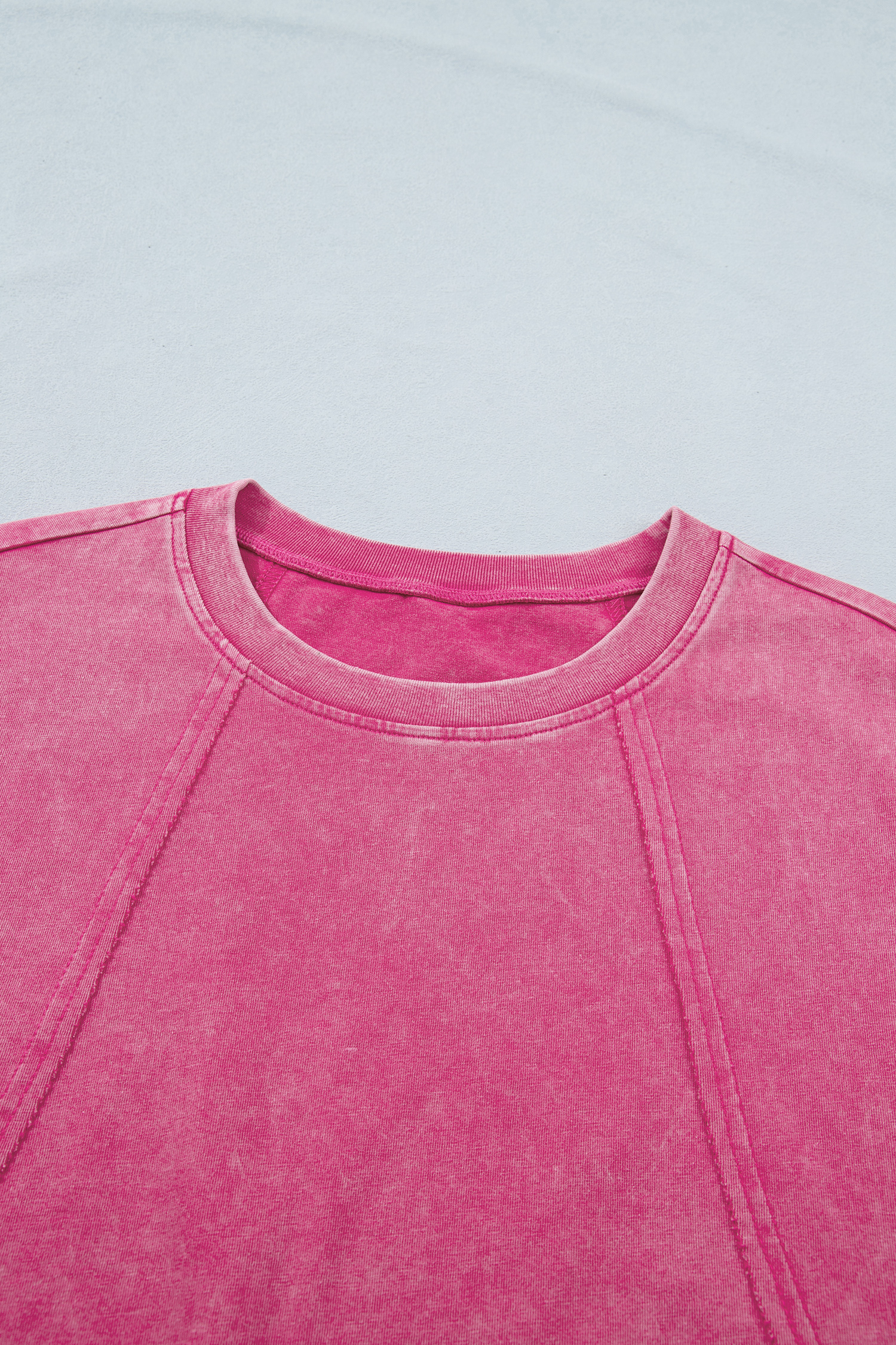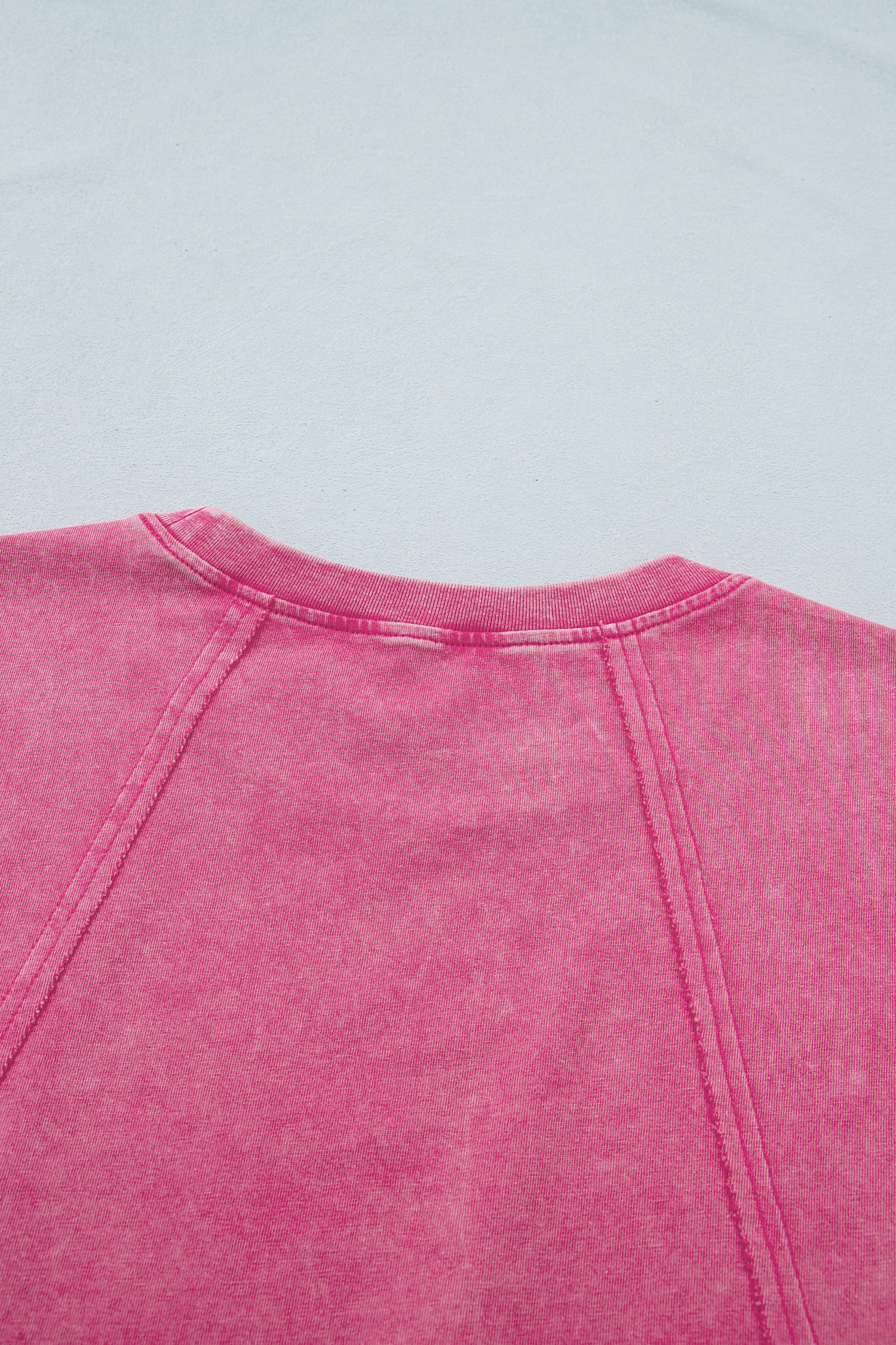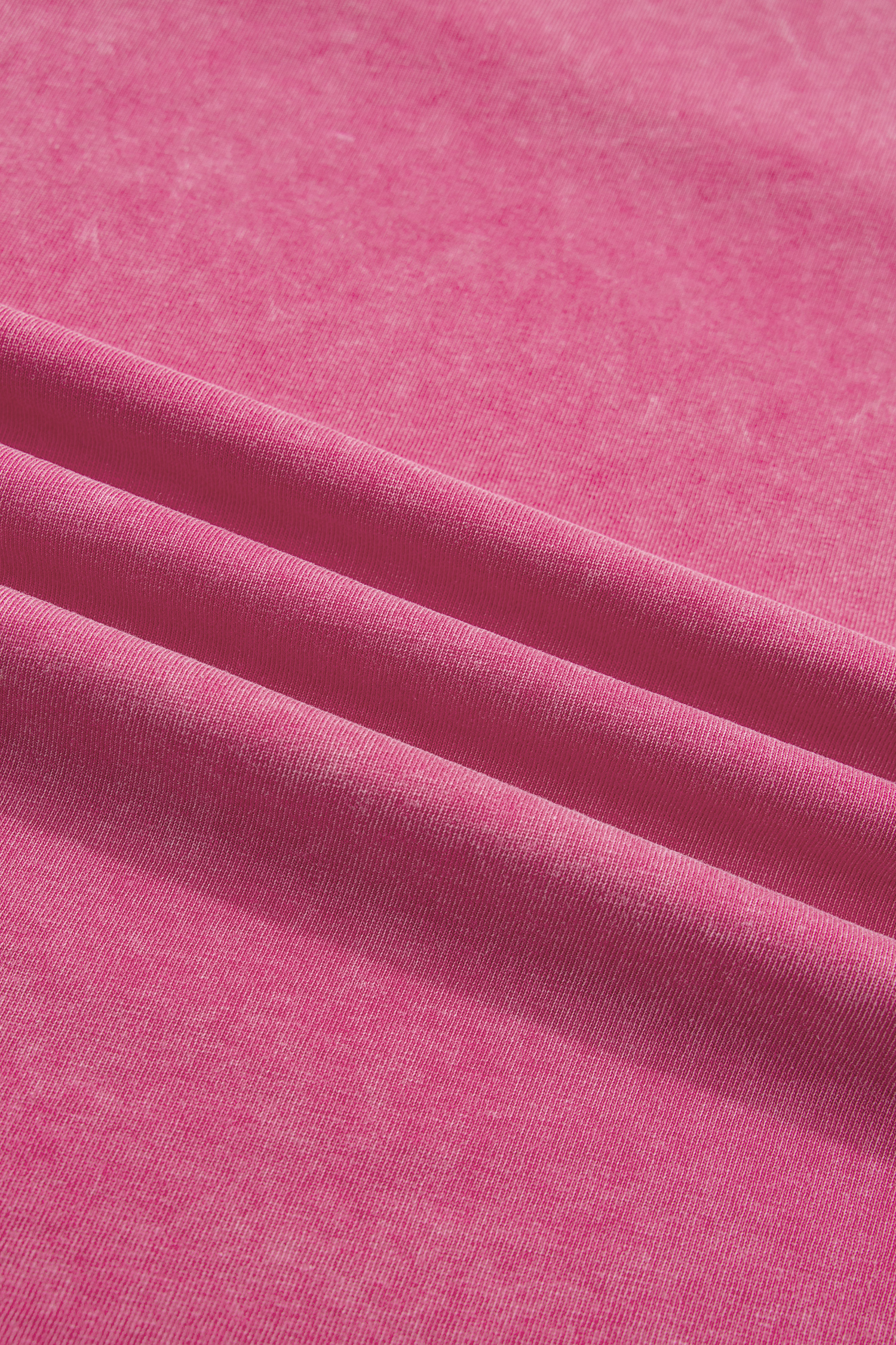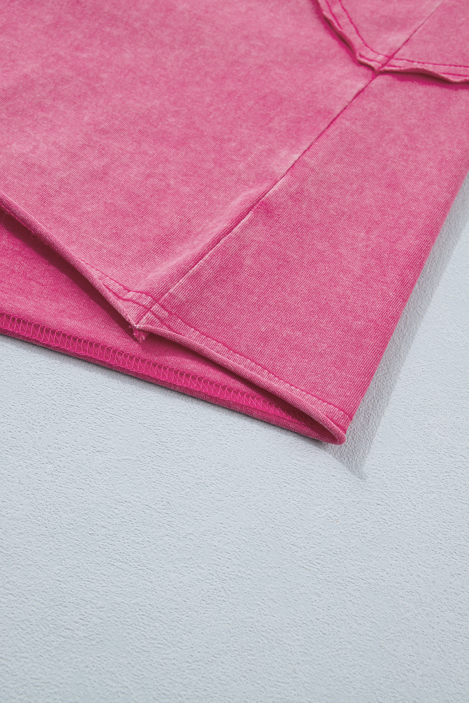Women’s Pink Mineral Wash Cap Sleeve Top – Lace Trim and Raw Seam Detail, Casual Cotton Shirt
