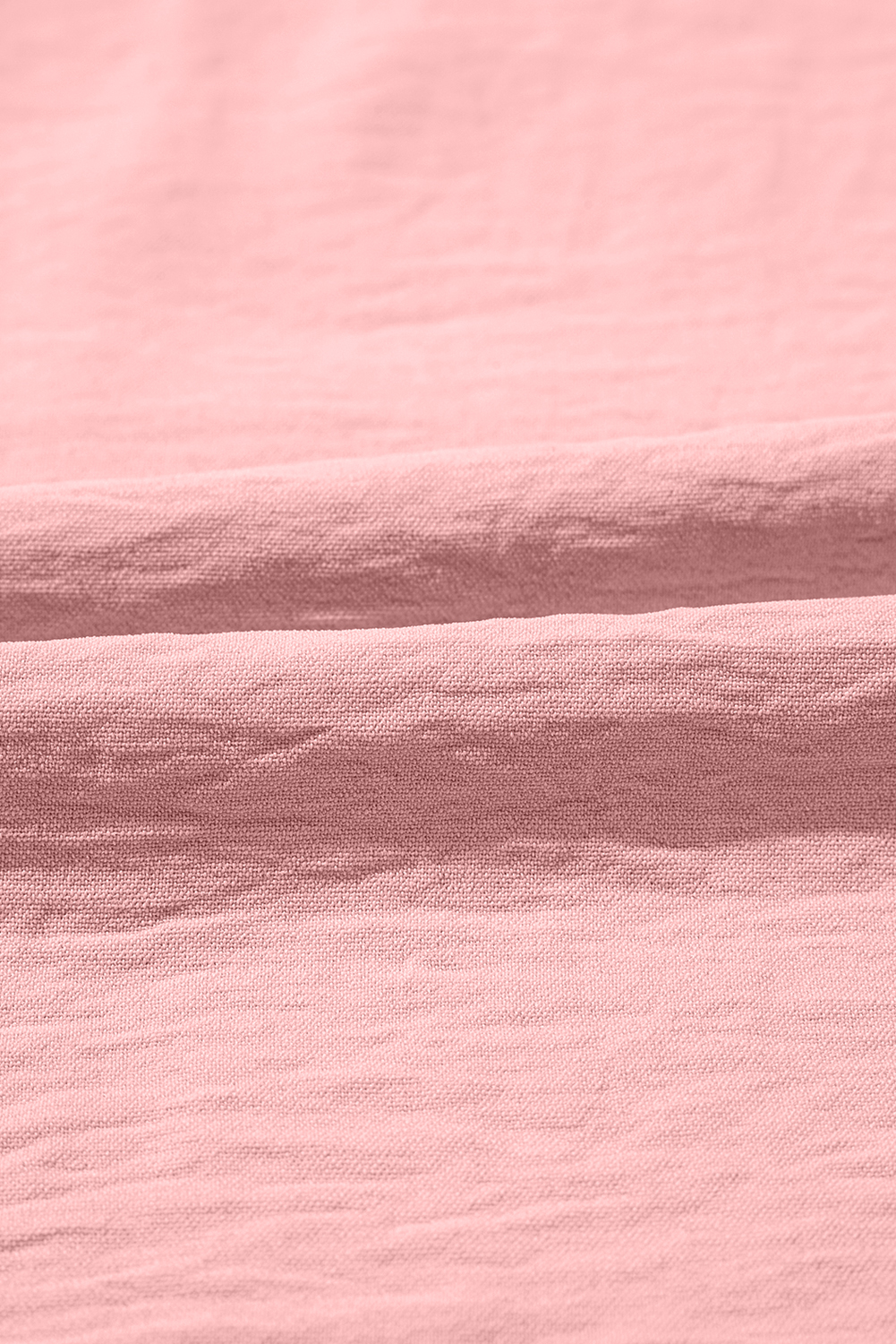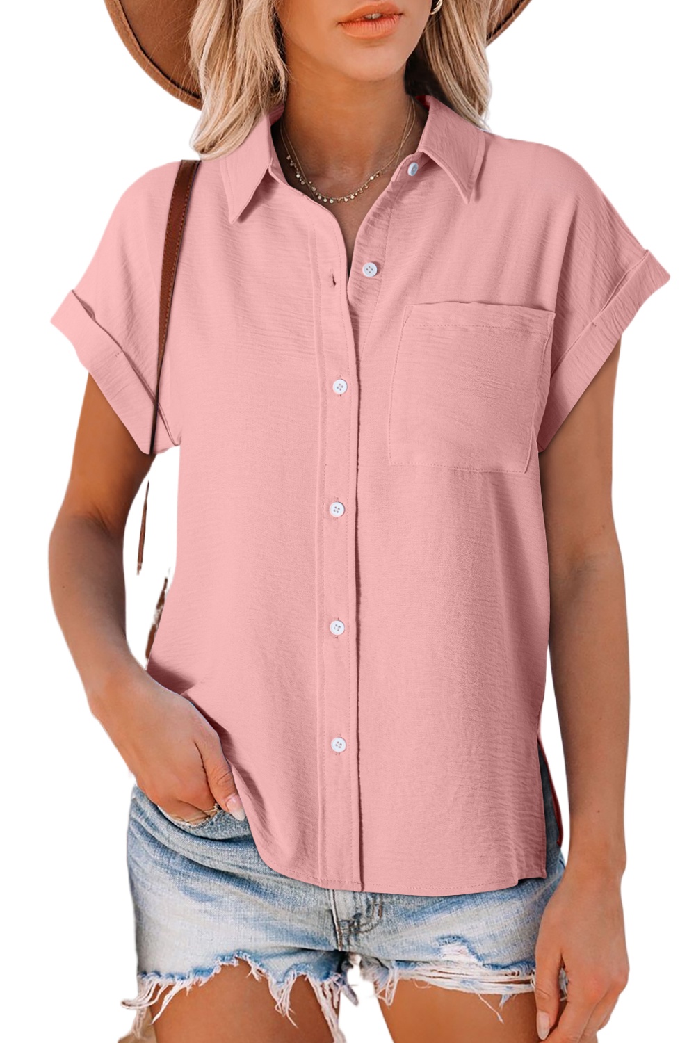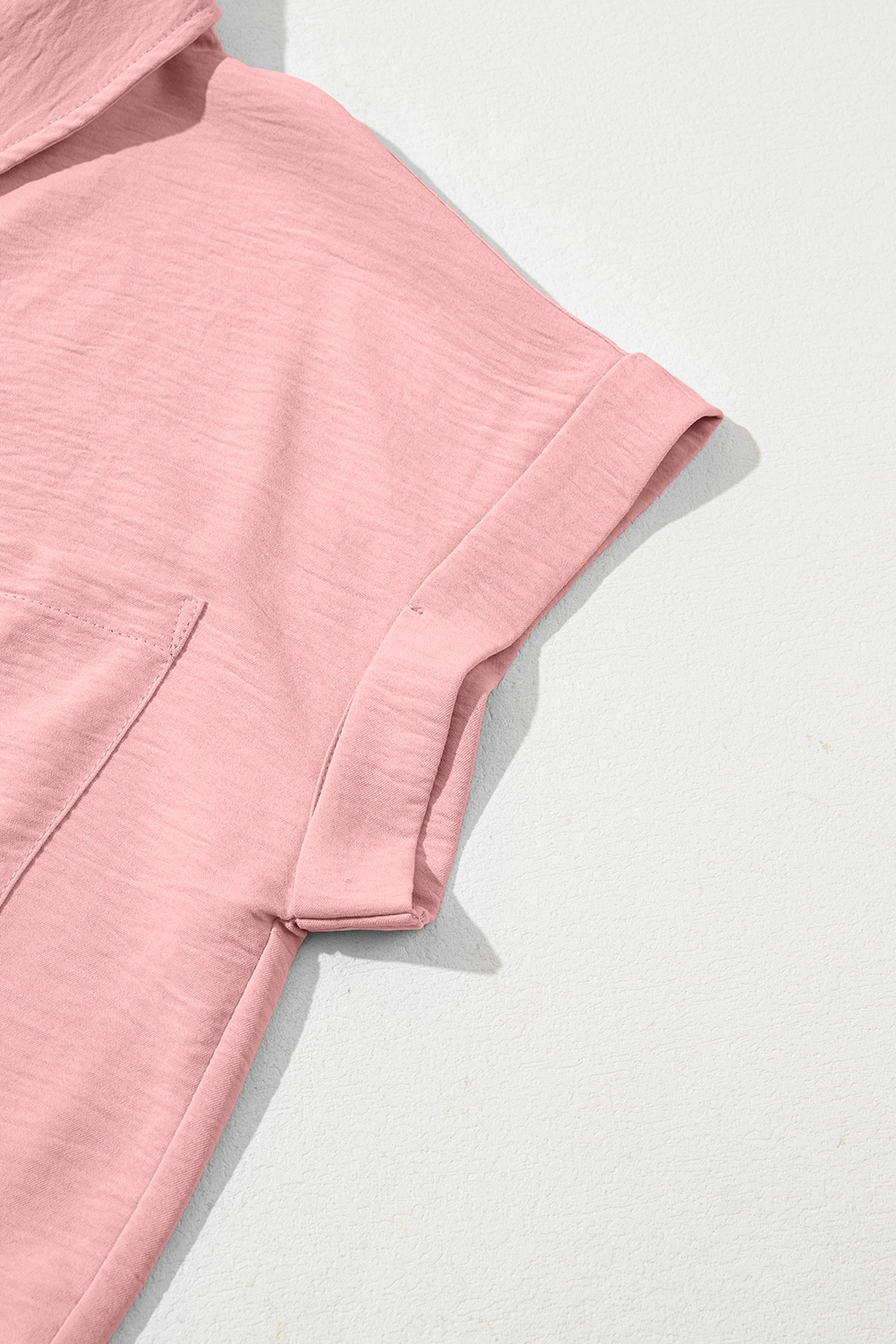 Women’s Pink Solid Color Cuffed Short Sleeve Shirt – Casual Summer Essential