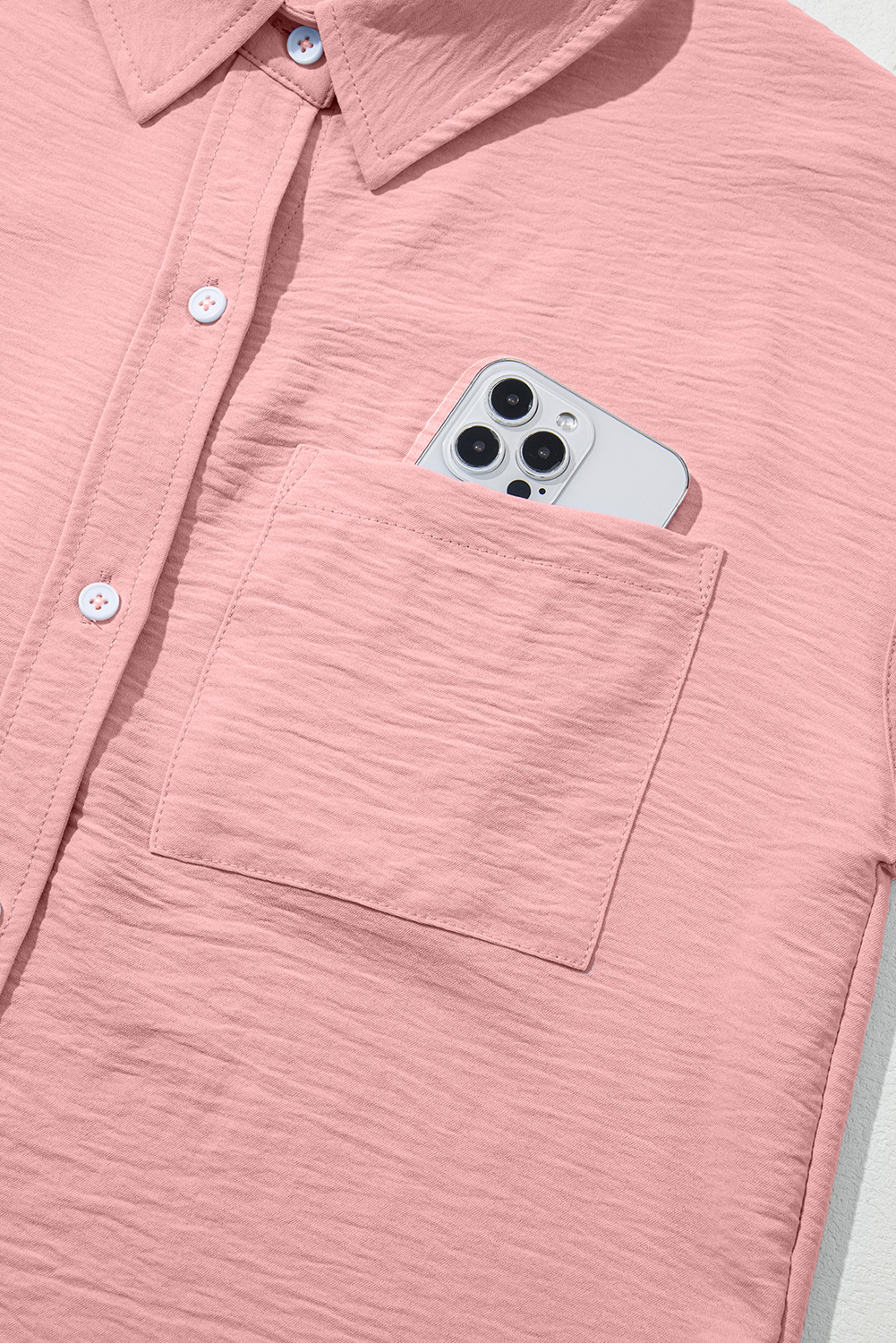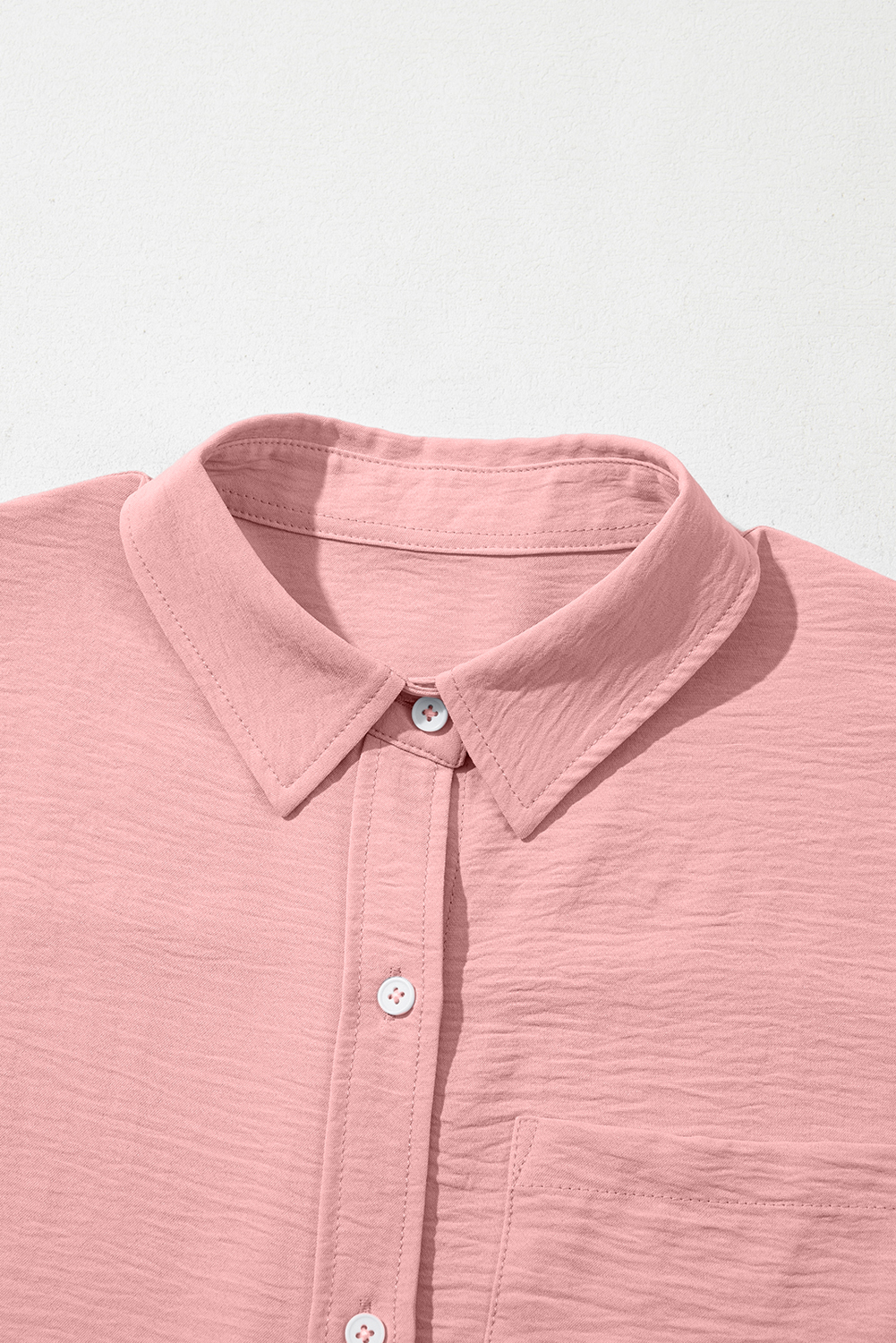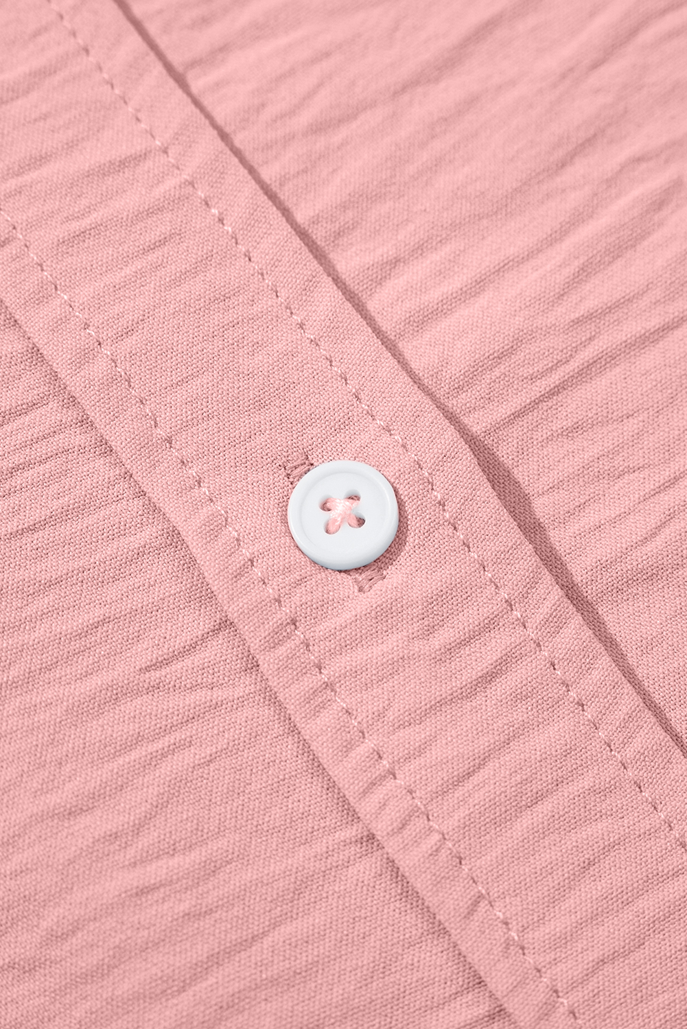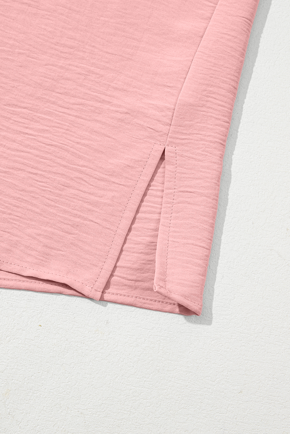 Women’s Pink Solid Color Cuffed Short Sleeve Shirt – Casual Summer Essential