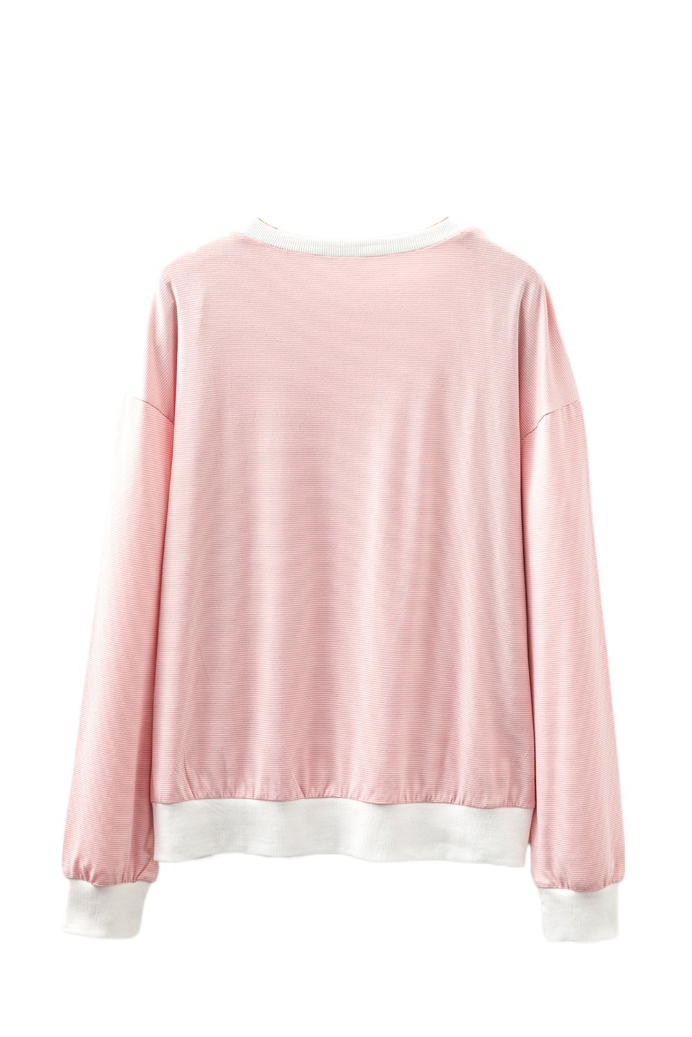 Women’s Pink Stripe Contrast Edge Patchwork Long Sleeve Top – Casual Fall Wear