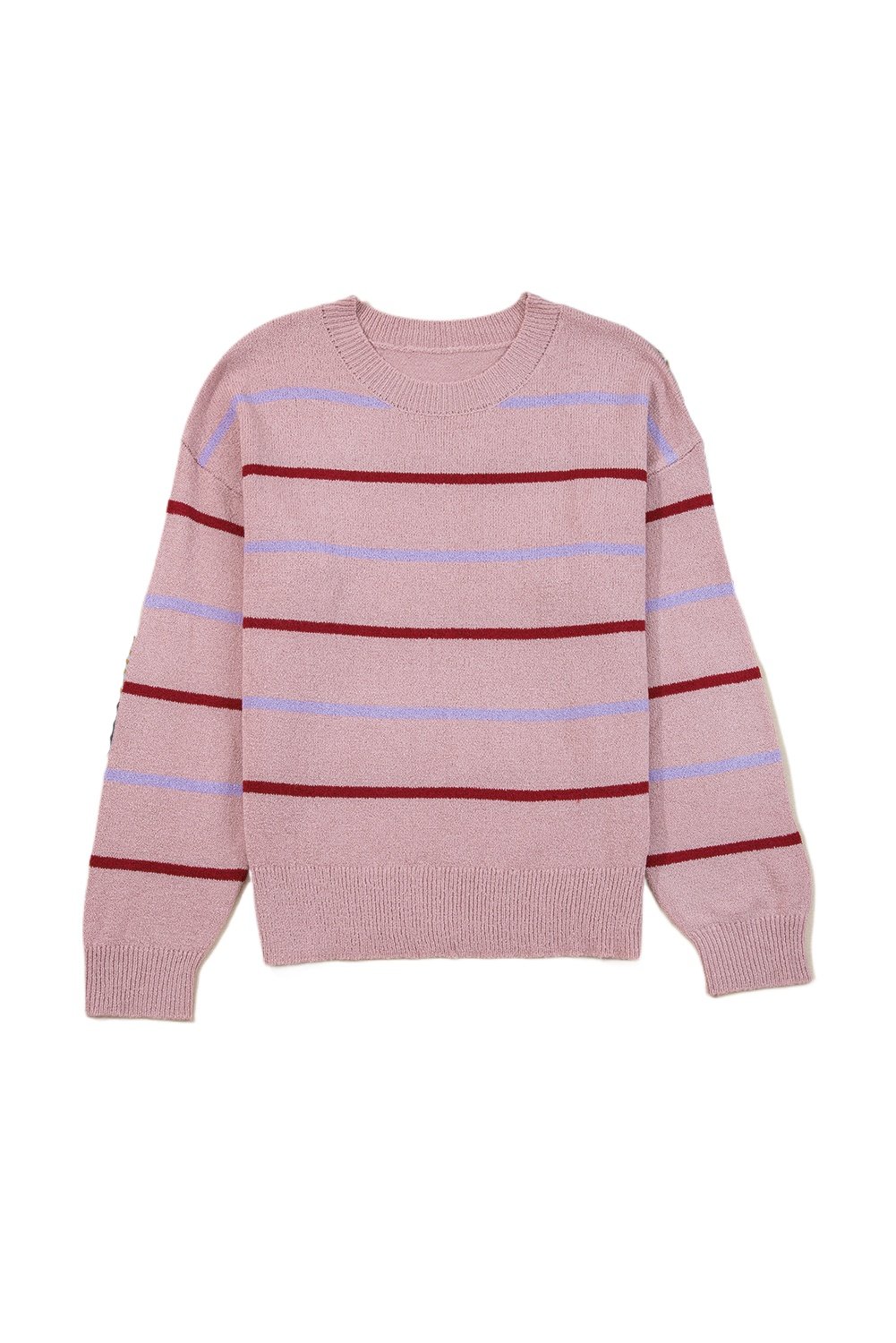 Women’s Pink Stripe Ribbed Drop Shoulder Sweater – Cozy Casual Style for Daily Wear
