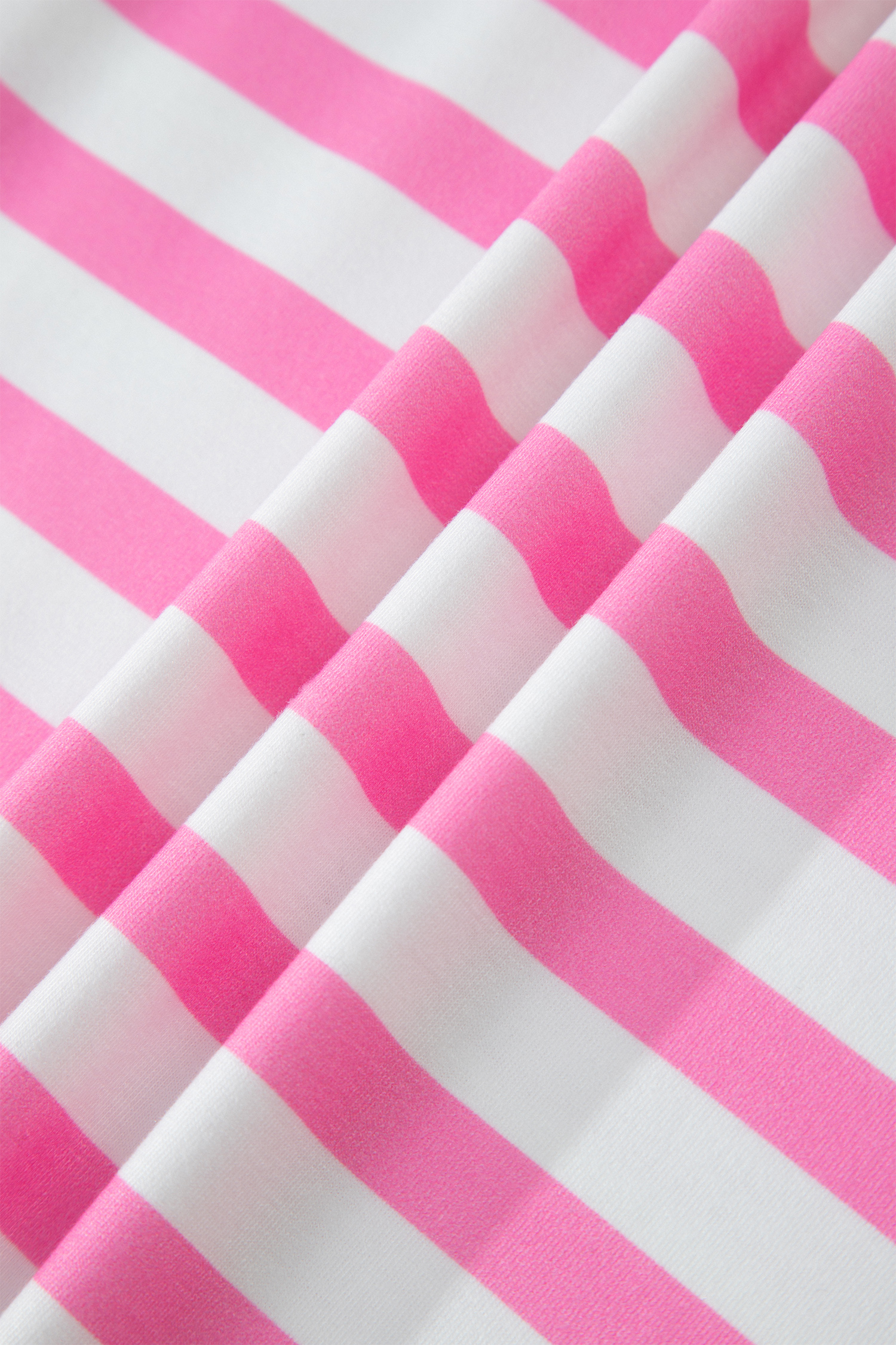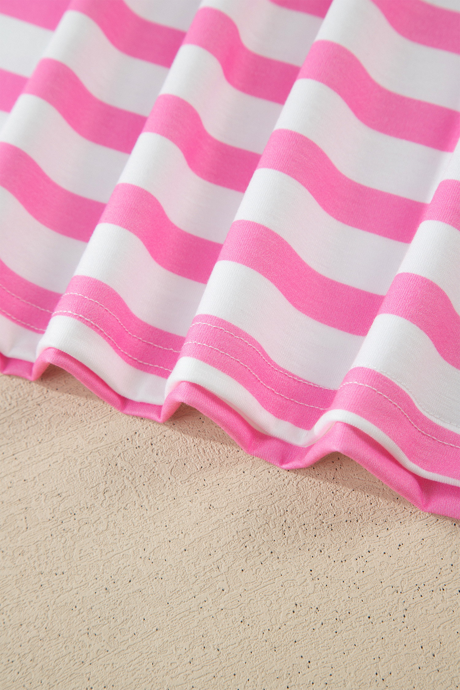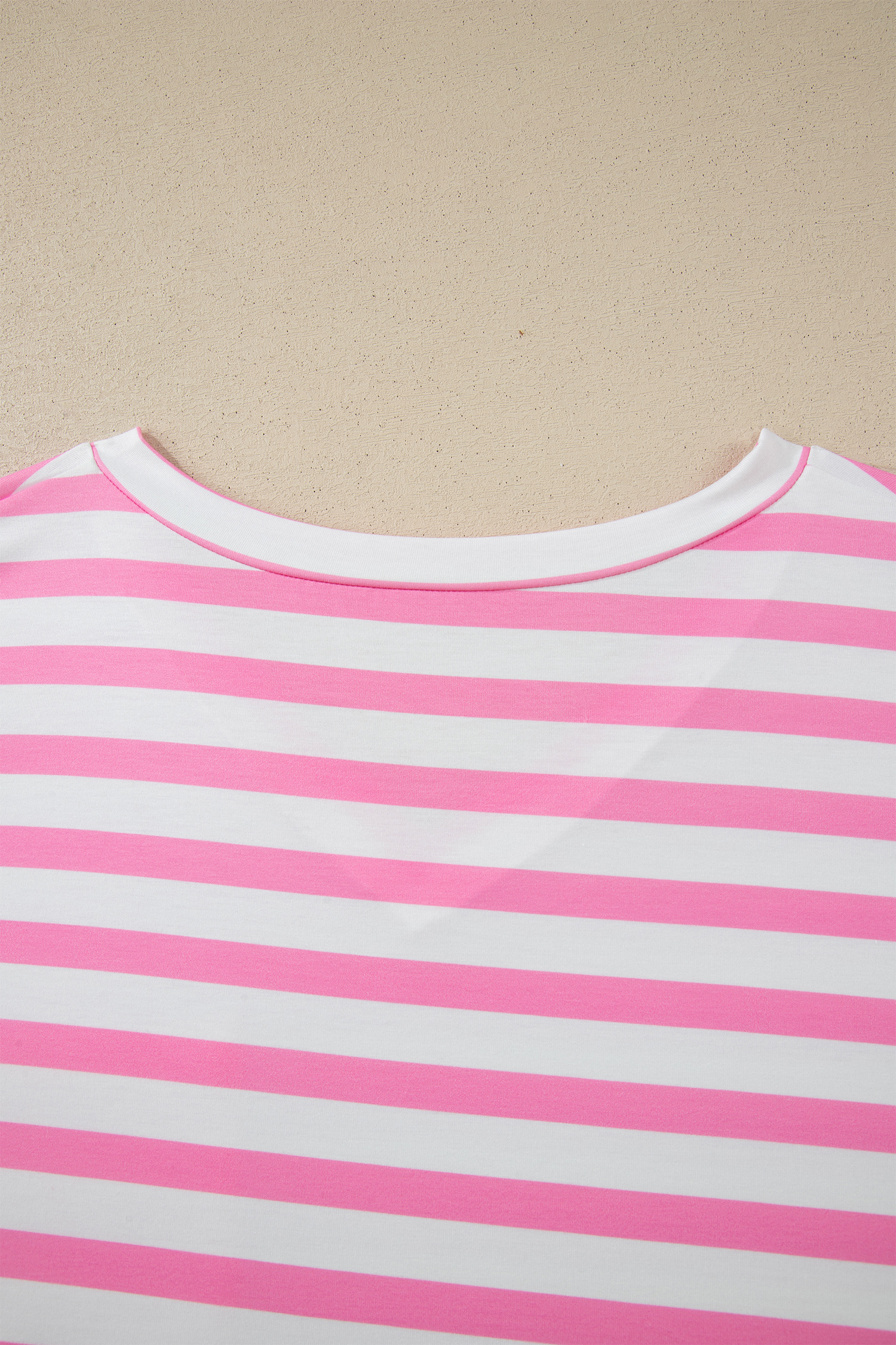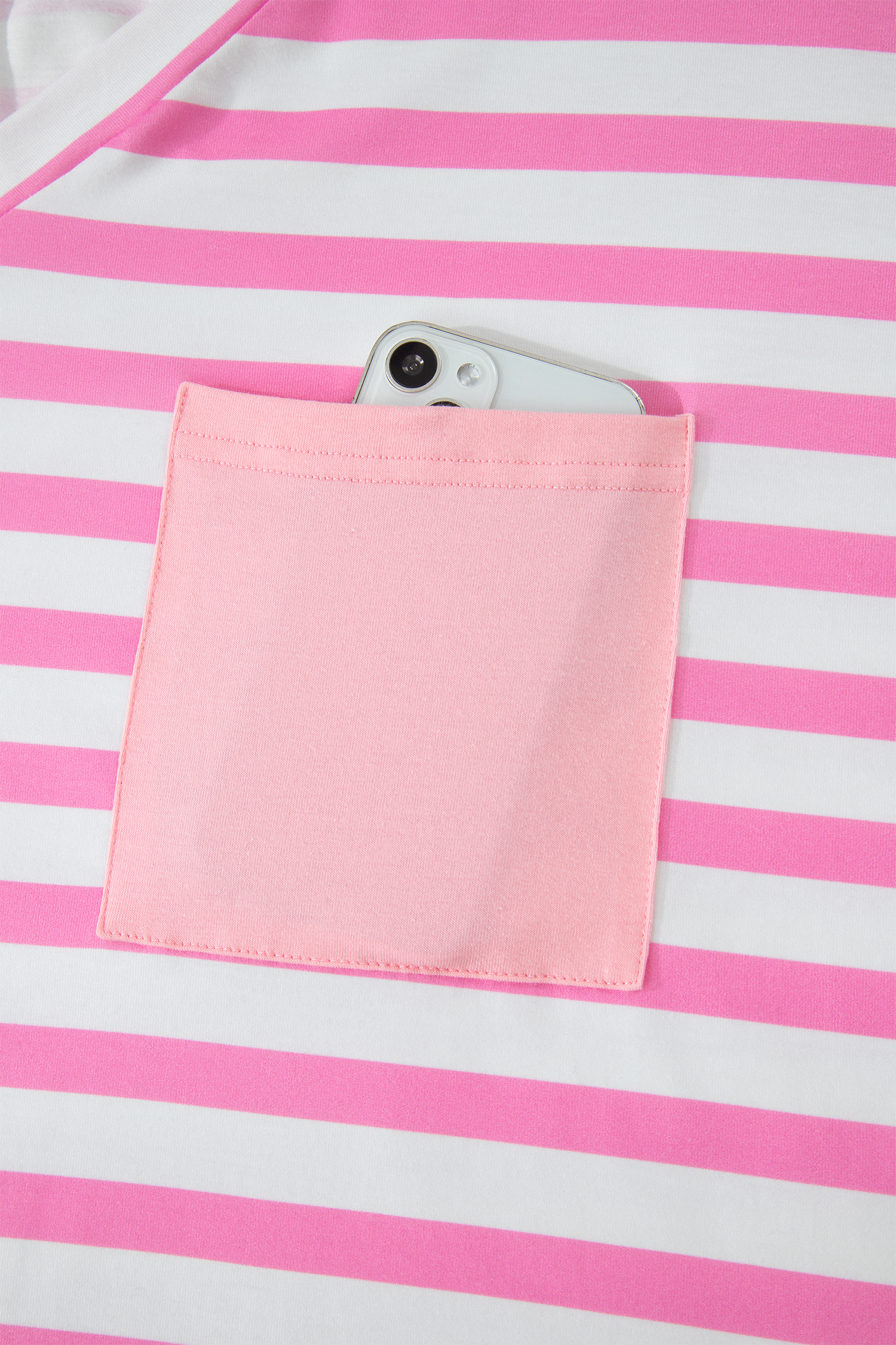 Women’s Plus Size Pink Stripe Tee – Short Sleeve V Neck Colorblock Shirt with Pocket