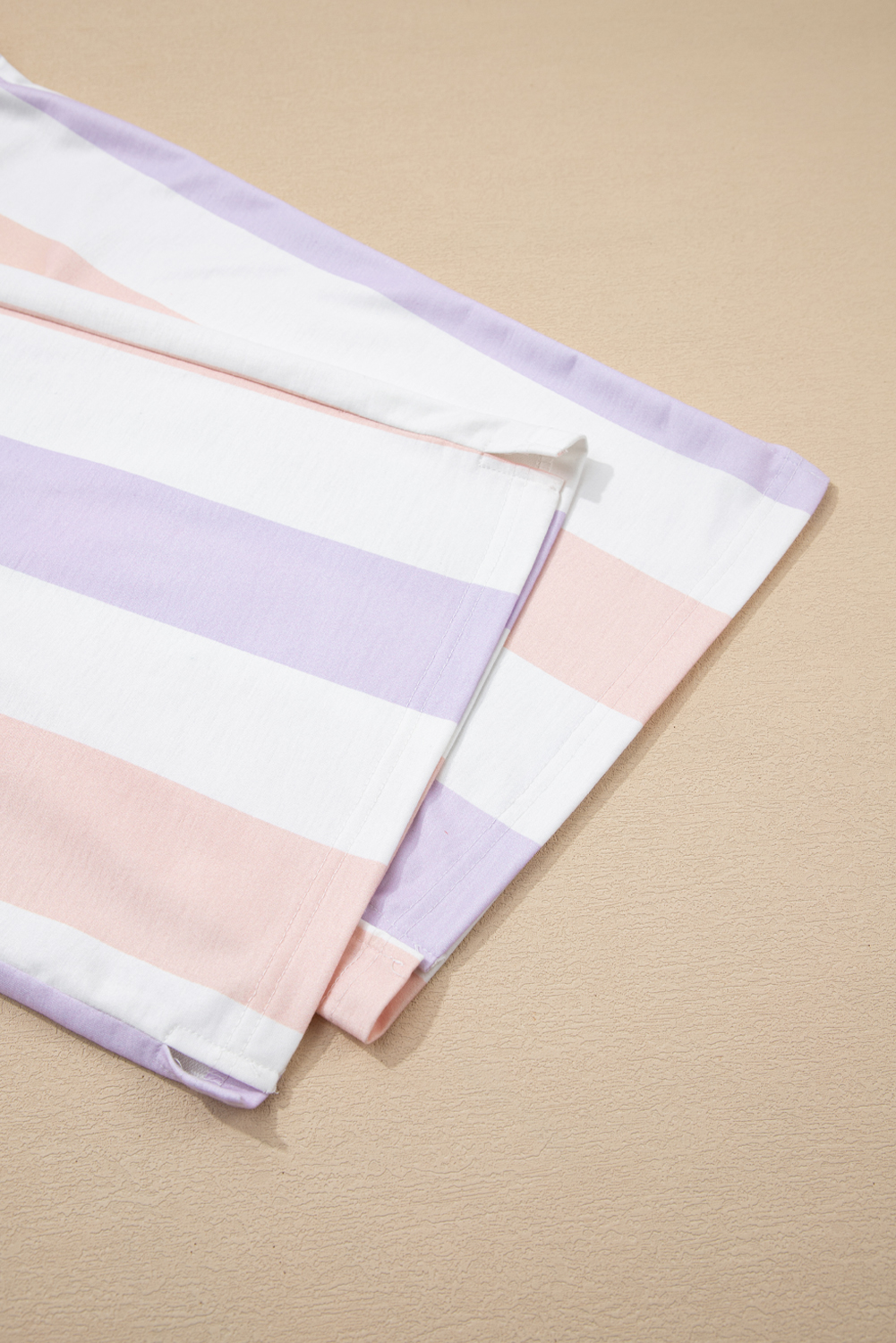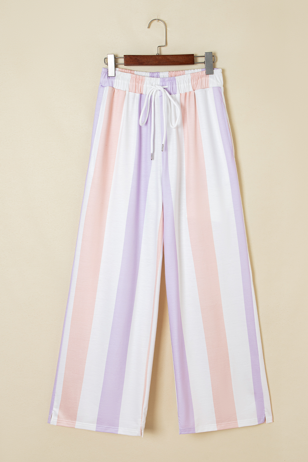 Women’s Purple Stripe Multicolored Drawstring Pants – Casual Wide Leg Trousers with Pockets for Daily Wear