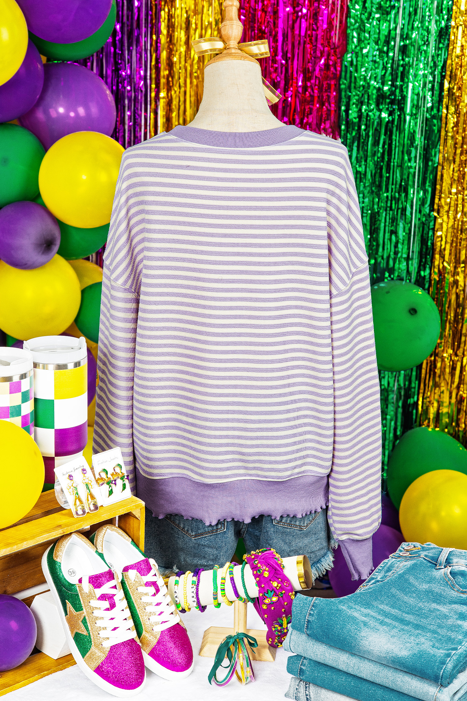 ✓ Eye-Catching Purple Stripe Design: This playful top features a vibrant striped pattern, perfect for festive occasions like Mardi Gras.