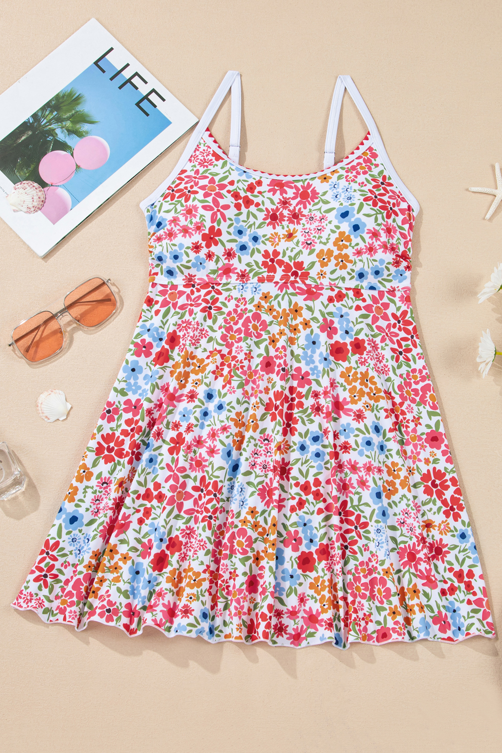 ✓ Eye-catching Red Floral Print: This swim dress features a vibrant floral design that enhances your summer style.