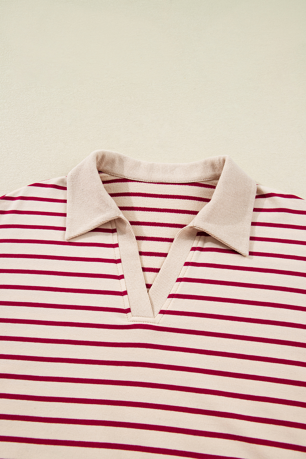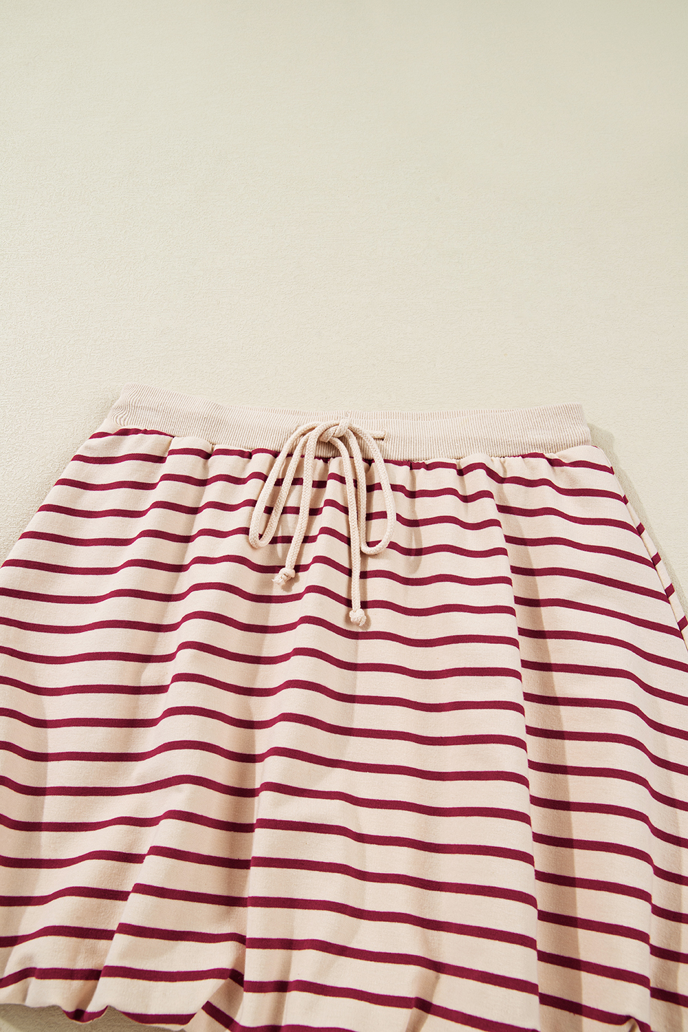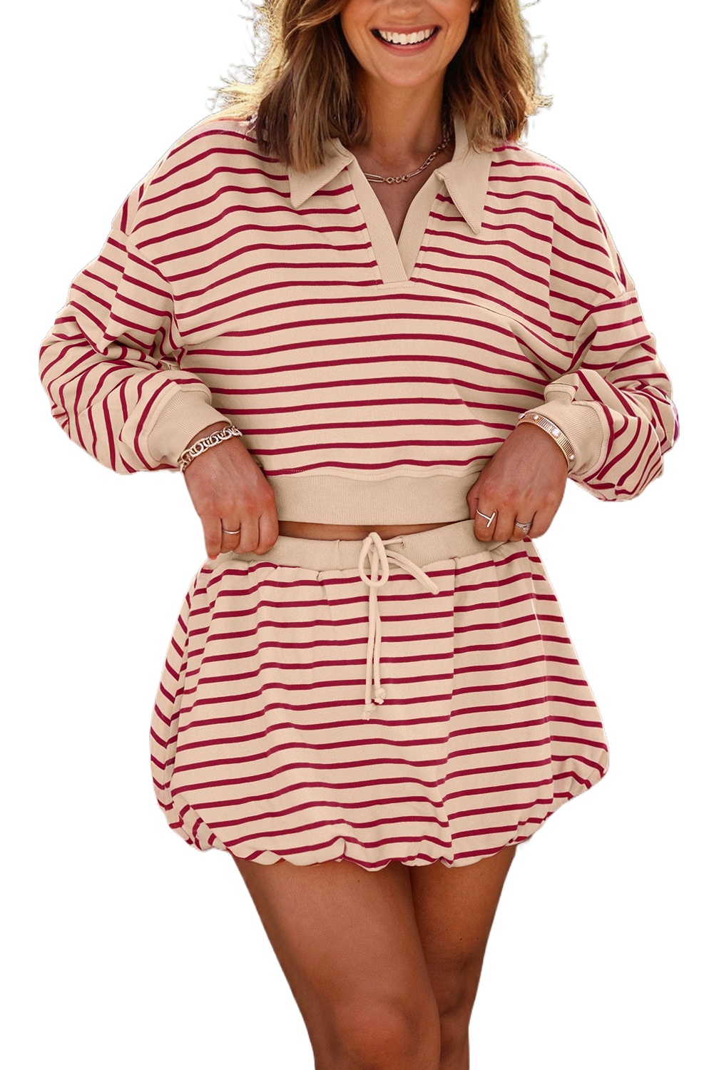 Women’s Red Stripe Cropped Collared Pullover & Bubble Mini Skirt Set – Effortless Style for Daily Wear
