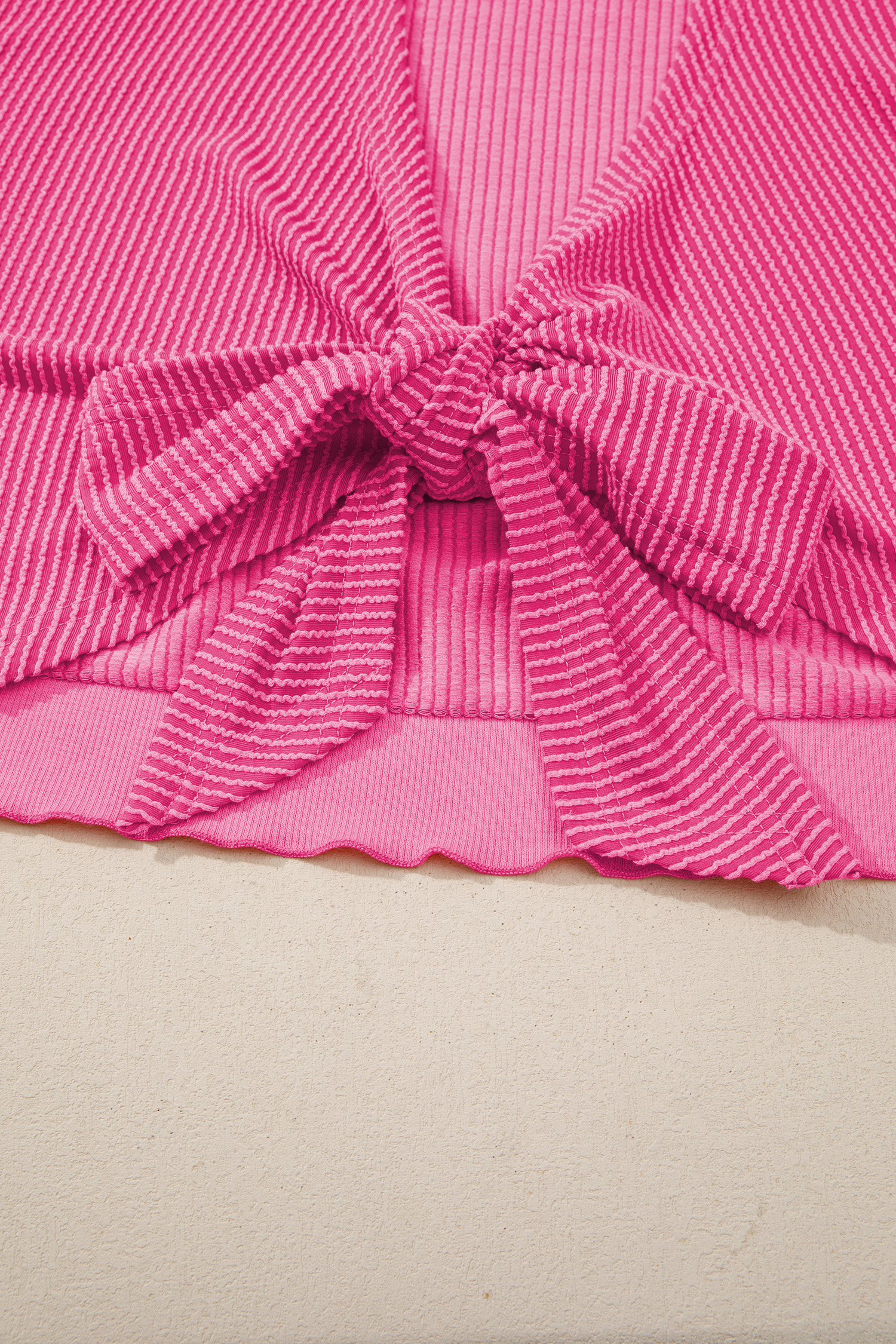 Women's Rose Red Spiral Ribbed Cutout Bow Knot Back Oversize T-Shirt for Casual Summer DaysWomen’s Rose Red Spiral Ribbed Cutout Bow Knot Back Oversize T-Shirt for Casual Summer Days