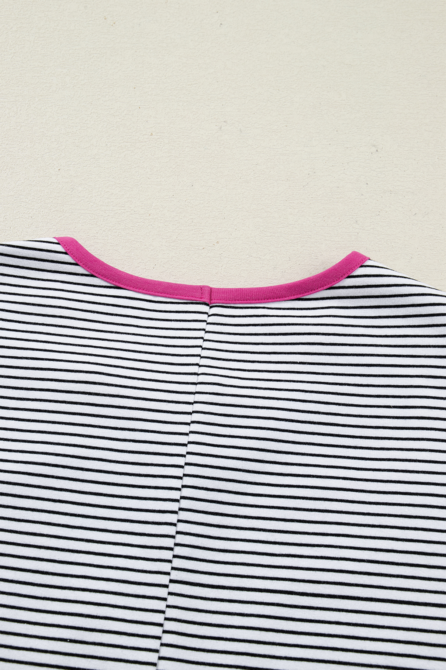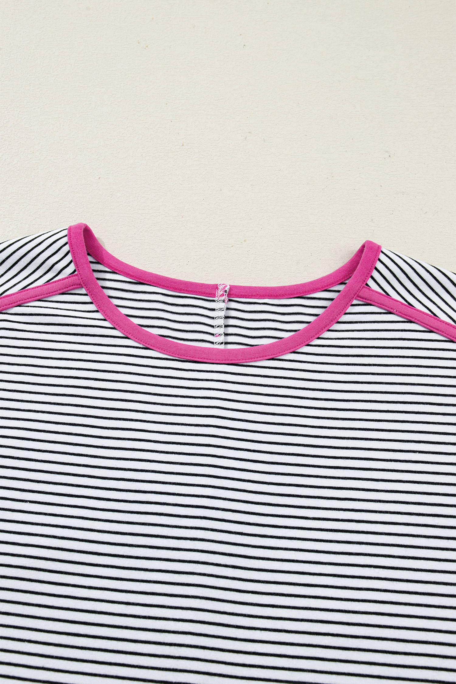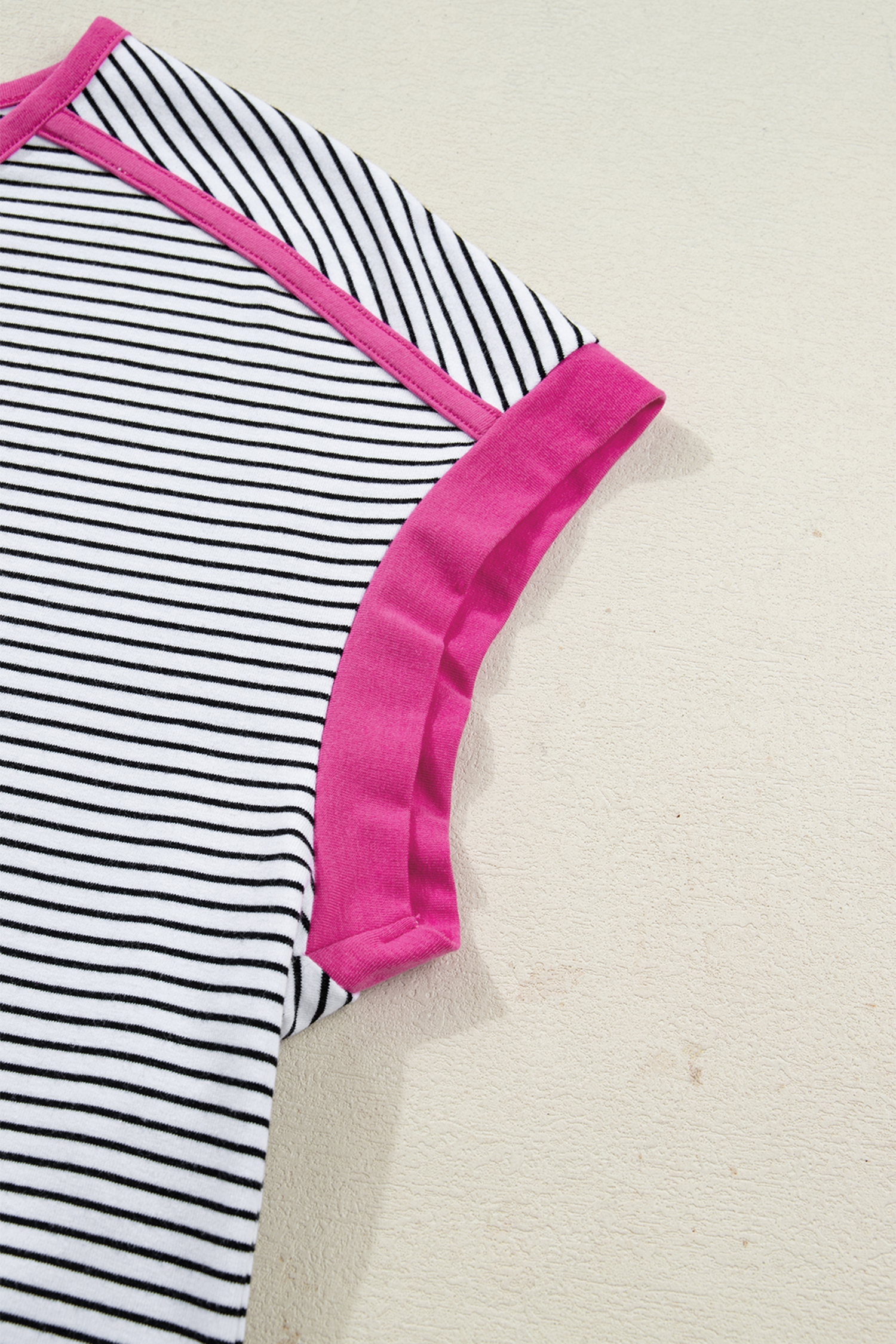 Women’s Rose Stripe Contrast Trim T-Shirt – Casual Round Neck Top for Summer Days