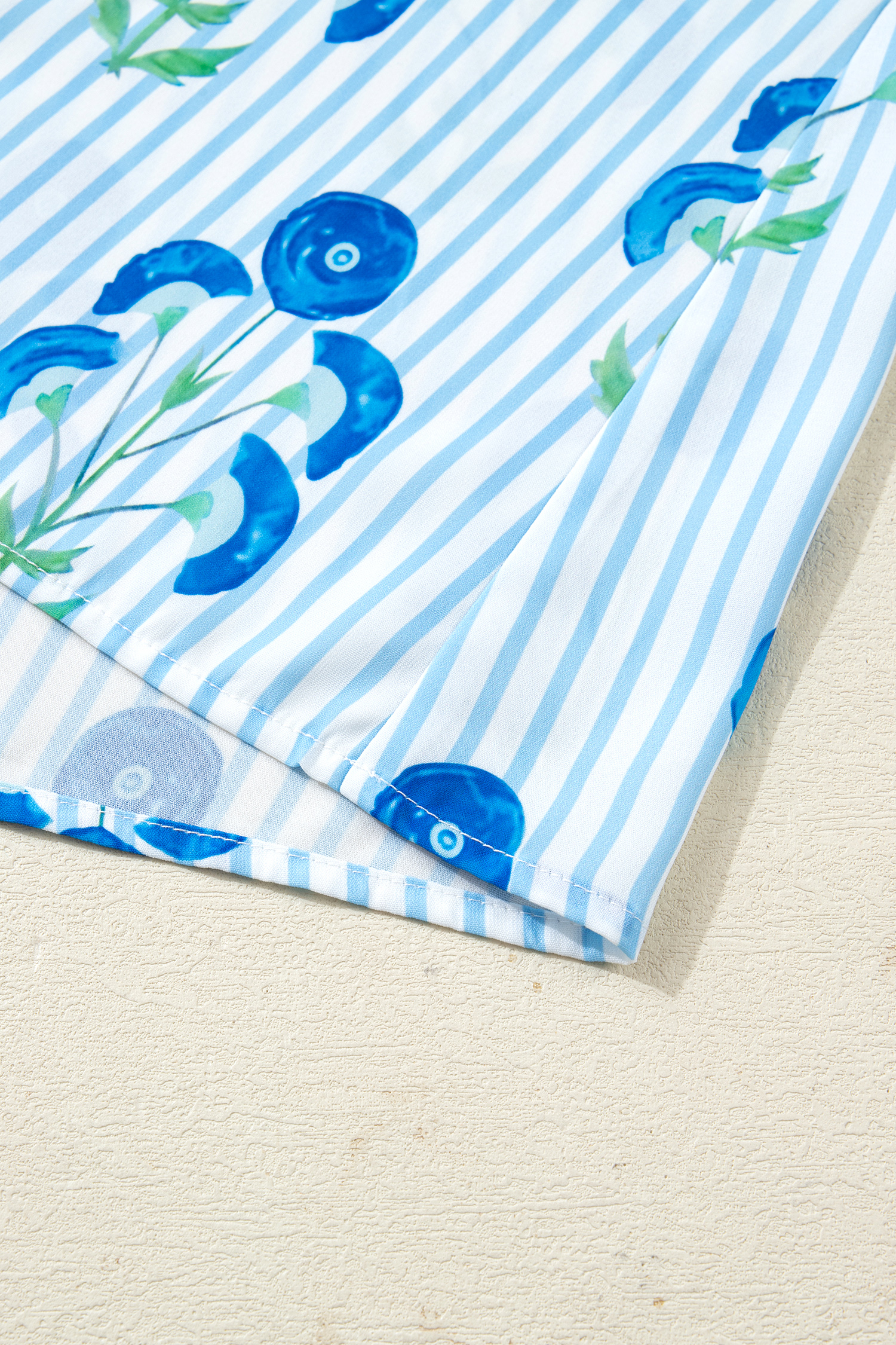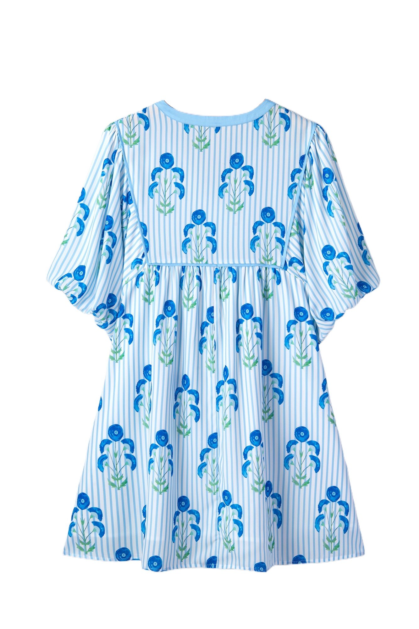 Women's Sky Blue Floral Striped Bubble Dress – Casual Plus Size Short Sleeve for Summer OutingsWomen’s Sky Blue Floral Striped Bubble Dress – Casual Plus Size Short Sleeve for Summer Outings
