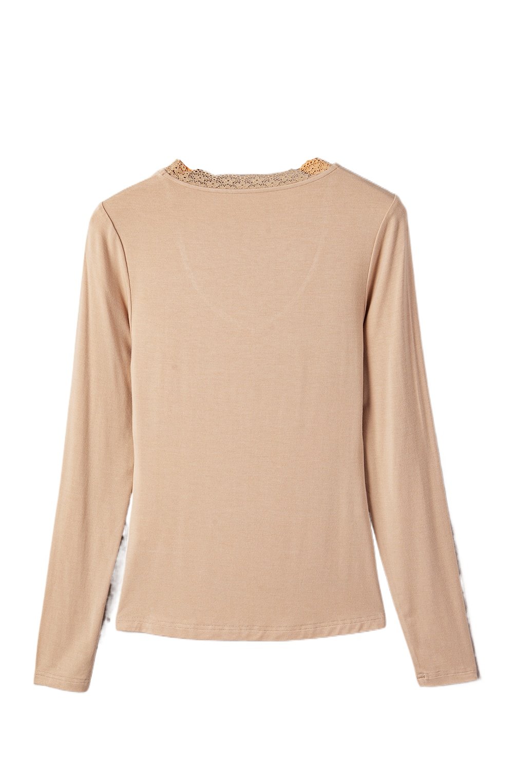 Women’s Smoke Gray Lace-Trimmed Long Sleeve T-Shirt – Elegant Sweetheart Neckline for Daily Wear