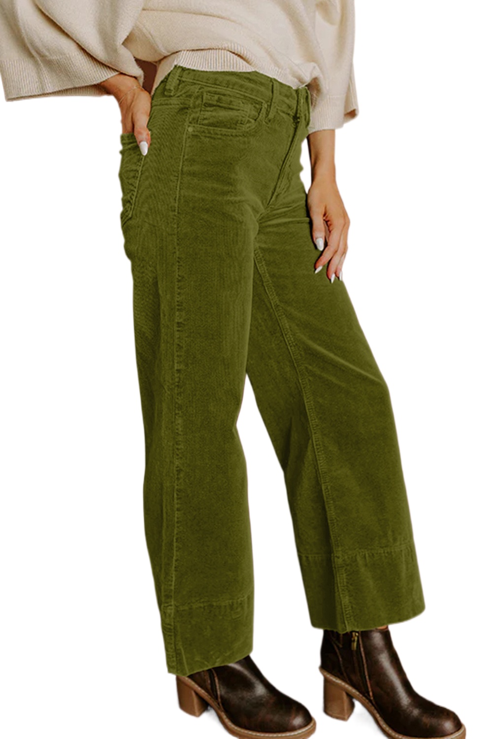 Women’s Vineyard Green Corduroy High Waist Wide Leg Pants for Daily Wear