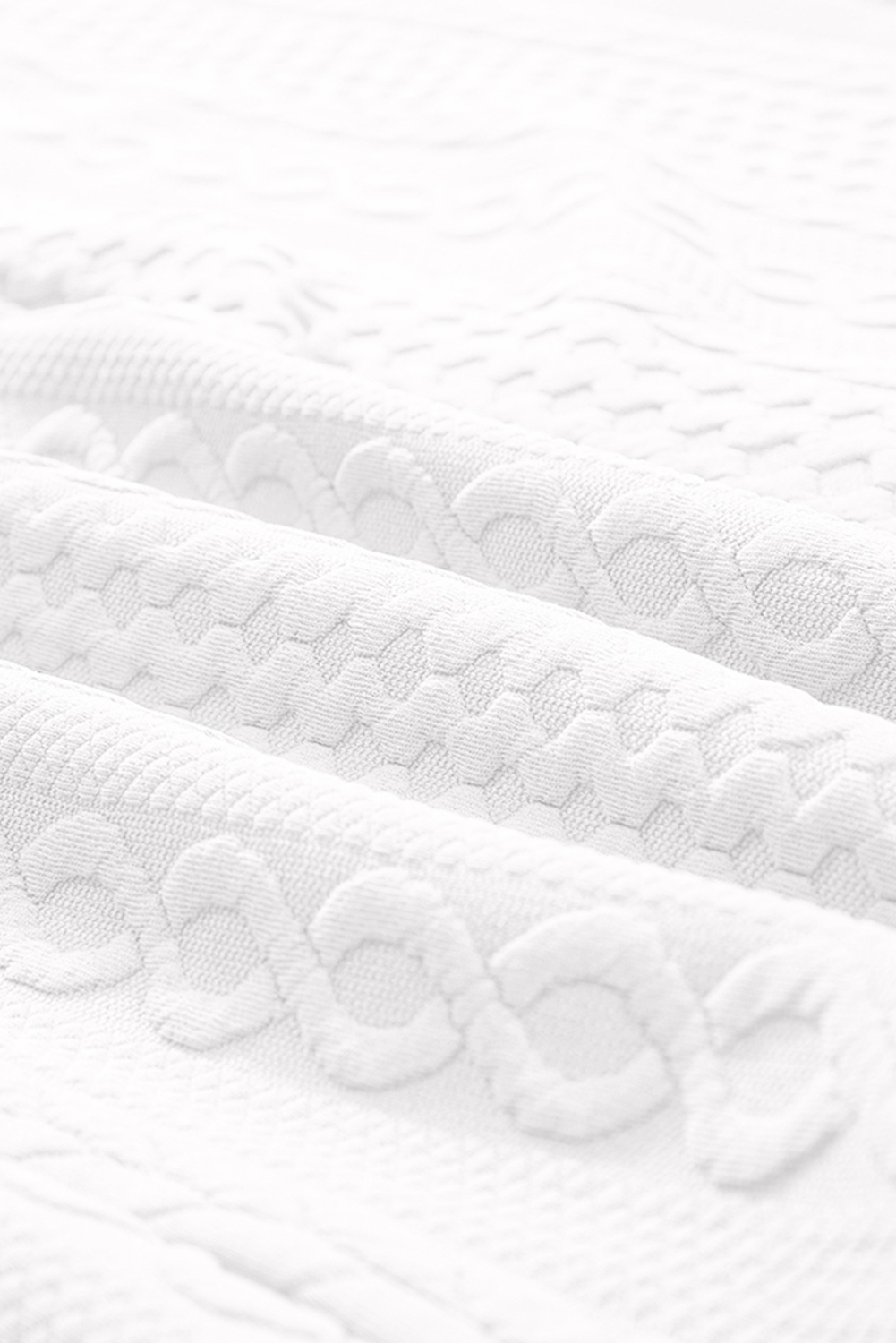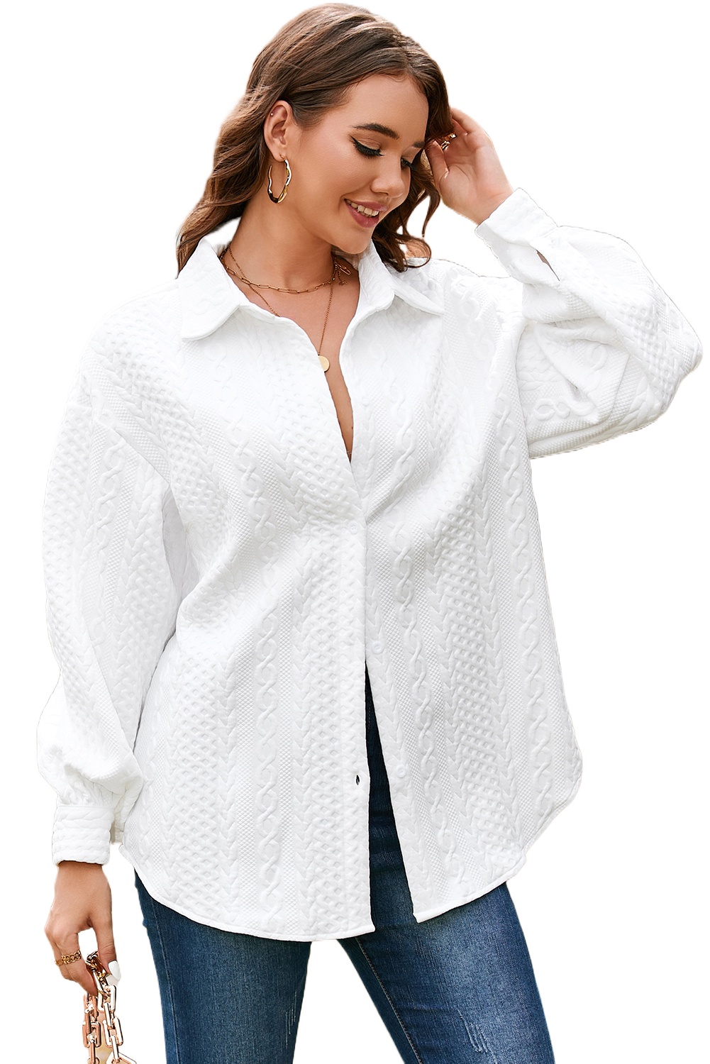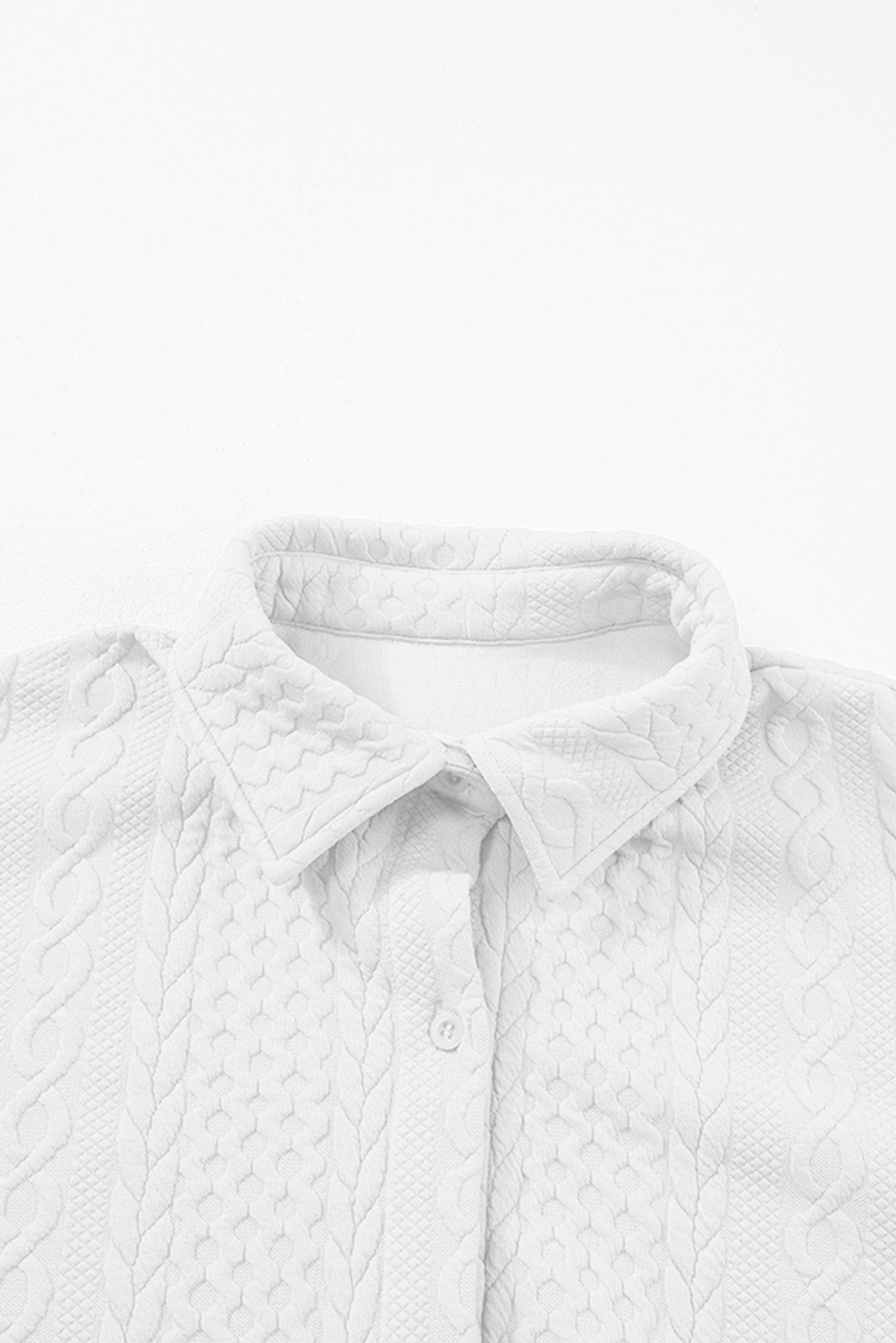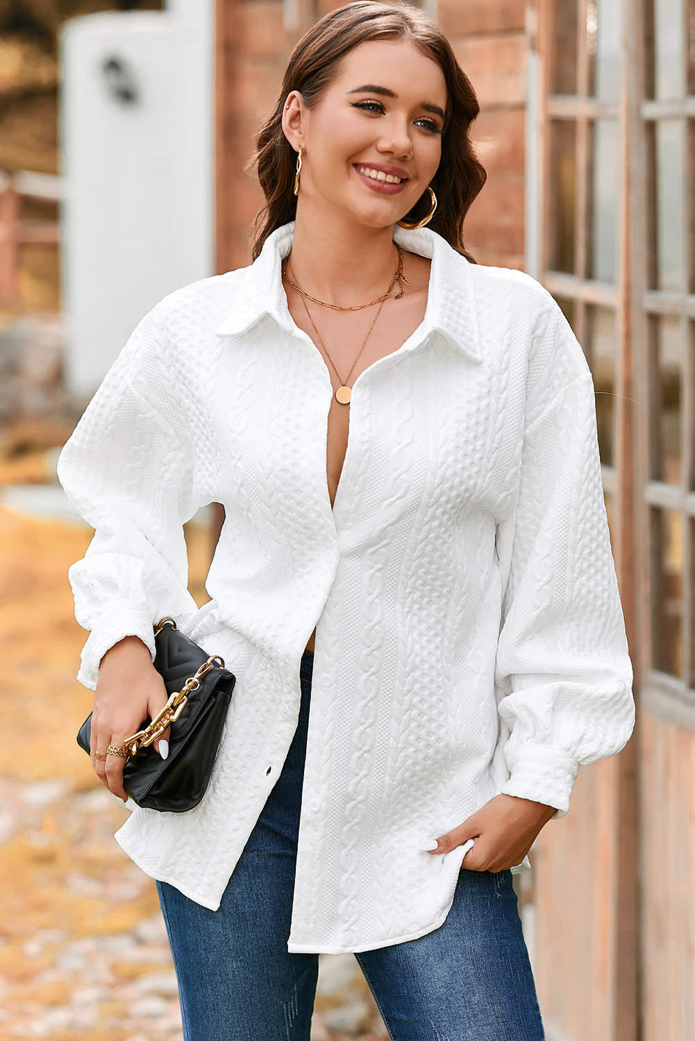 1. **Chic Puff Sleeve Design**: The White Cable Texture Puff Sleeve Loose Shacket features trendy puff sleeves that add a playful and feminine flair to your casual wardrobe.