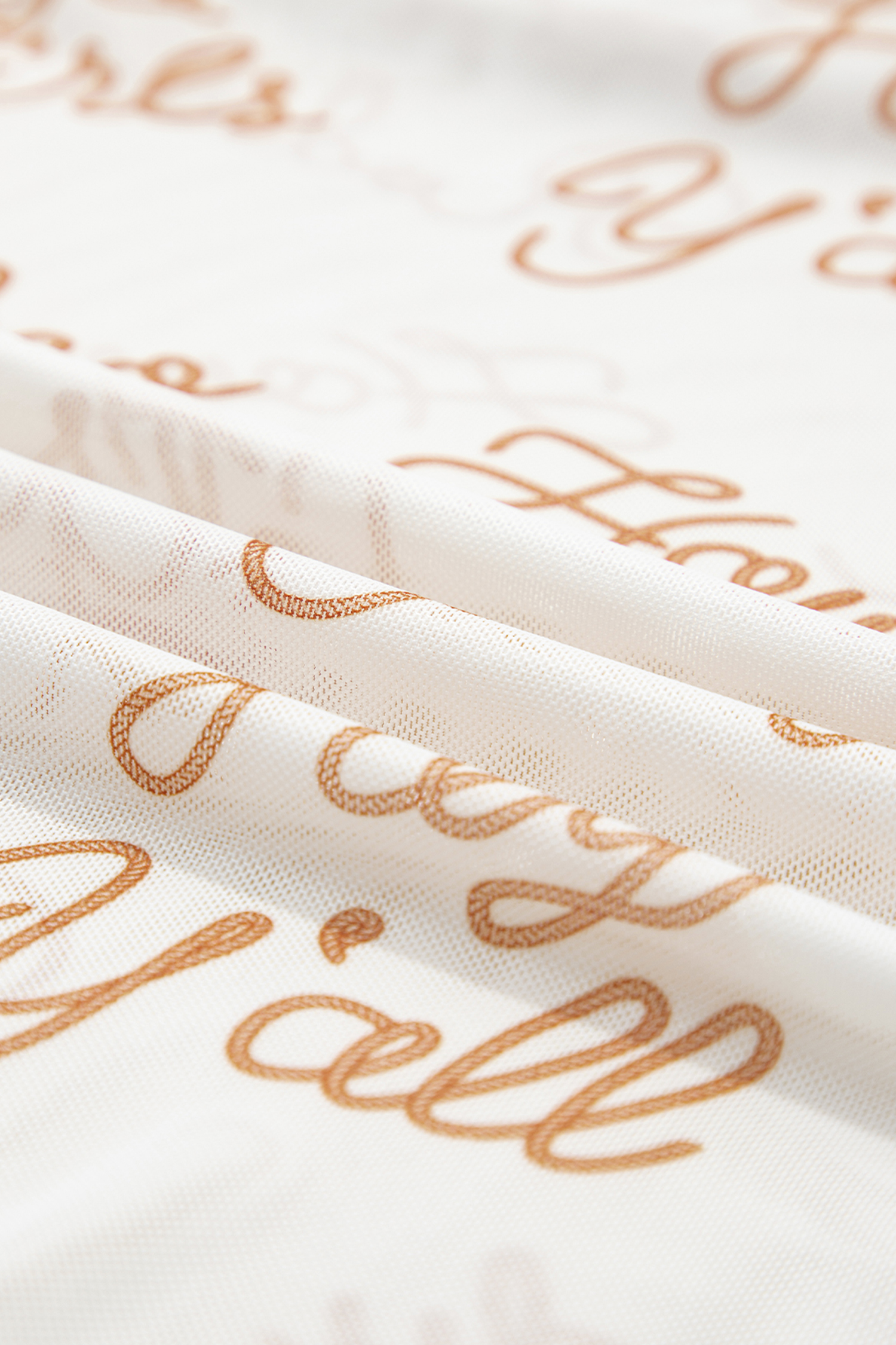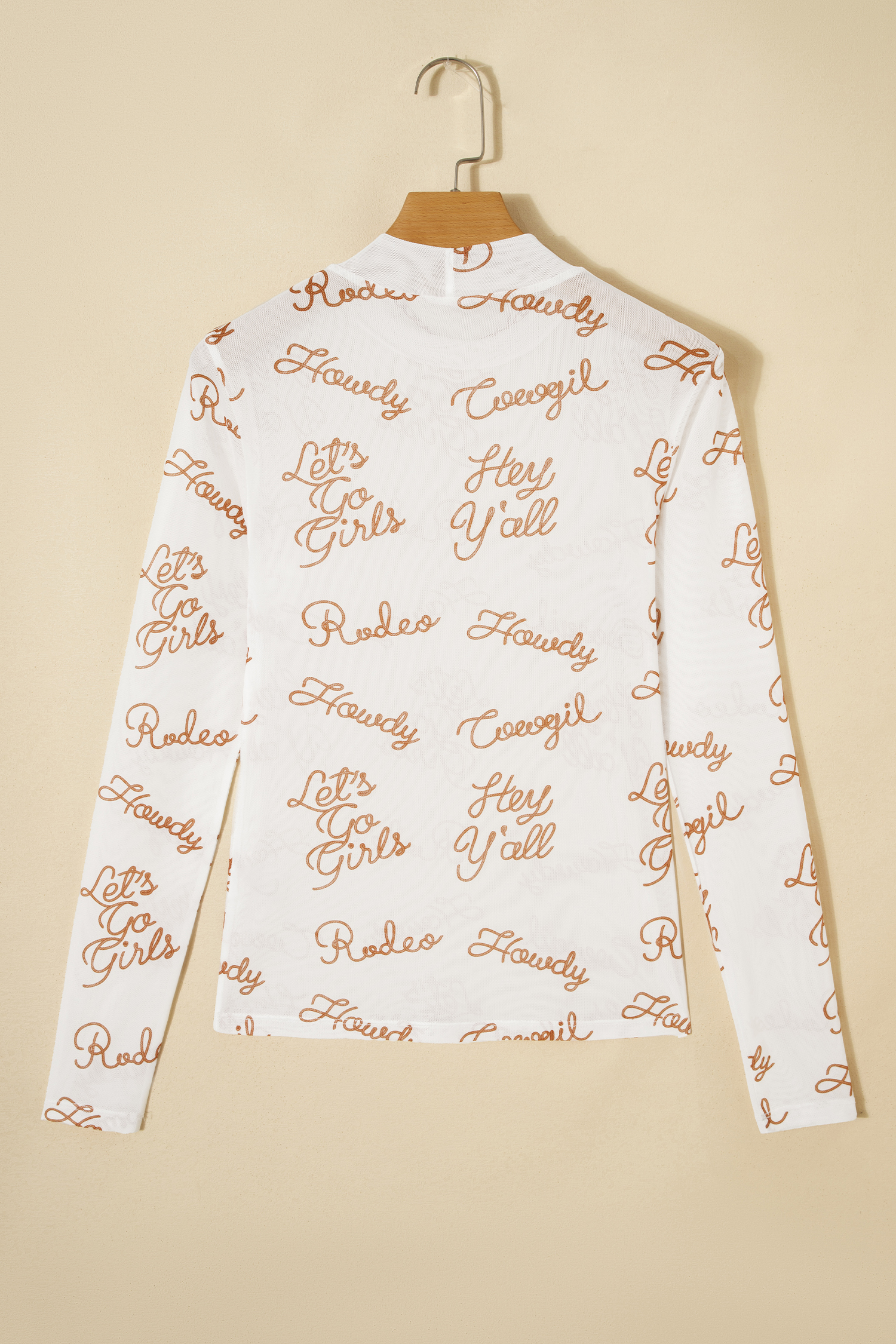 Women’s White Howdy Hey Yall Mesh Long Sleeve Top – Casual Spring Western Style