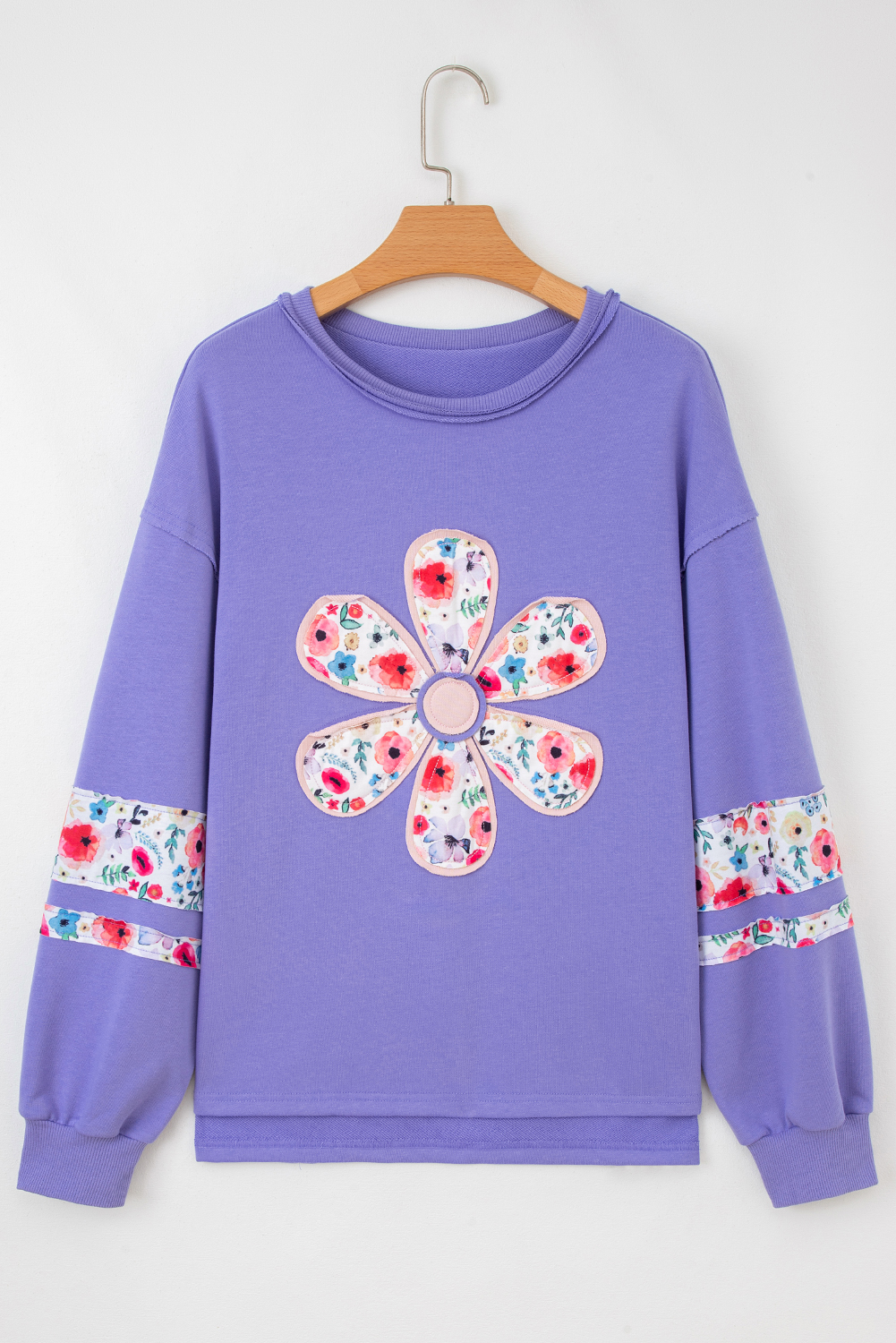 ✓ Delicate Wisteria Floral Applique: Adorned with intricate floral details in soft wisteria hues, this sweatshirt brings a touch of elegance to women’s casual wardrobes.