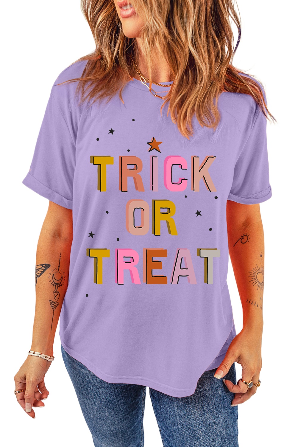 Women’s Wisteria Halloween Graphic T-Shirt – Trick or Treat Slogan