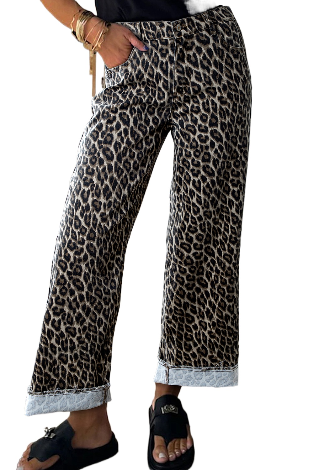Women’s Yellow Leopard Print Wide Leg Jeans – High Waist Straight Loose Fit for Daily Casual Wear